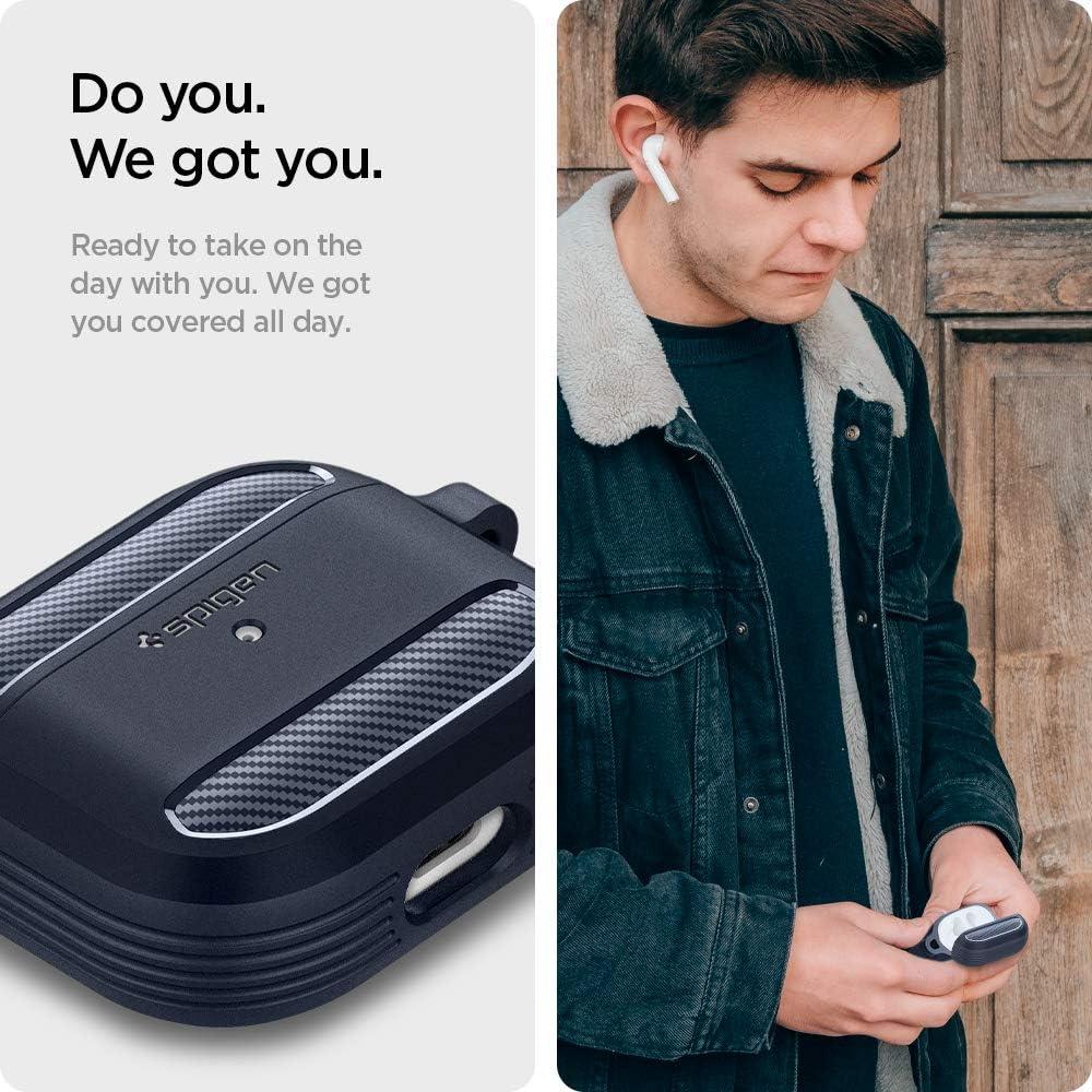 Spigen Rugged Armor Designed for Airpods 3rd Generation Case (2021) Drop-Protection Cover with Keychain – Matte Black(Matte Black)