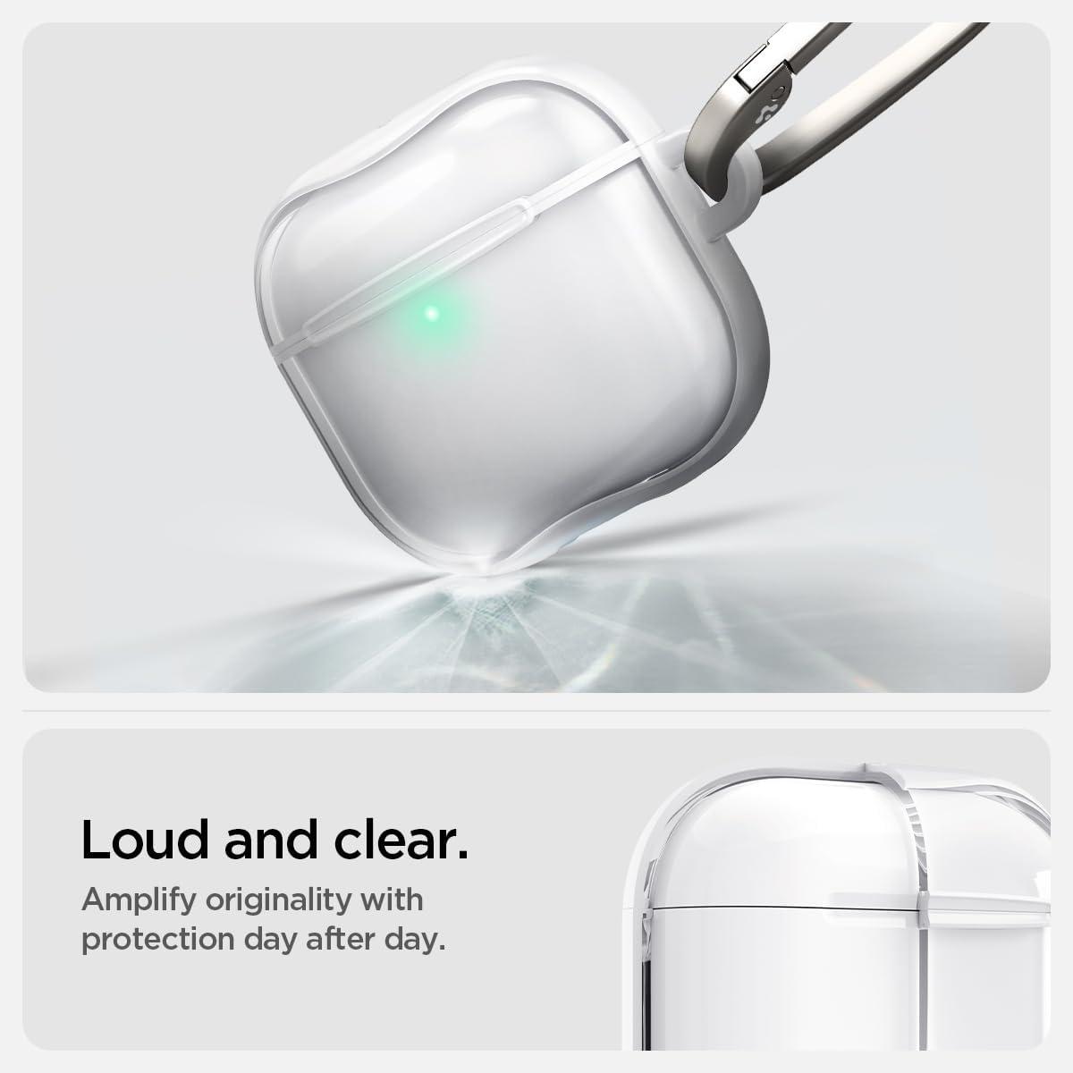 Spigen Ultra Hybrid Designed AirPods 4 Case (2024) Anti-Yellowing Clear Cover with Carabiner Key Chain – Jet White(Jet White)