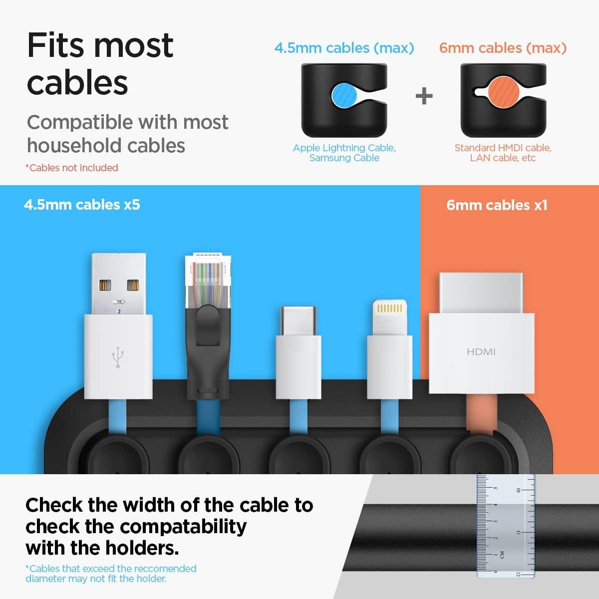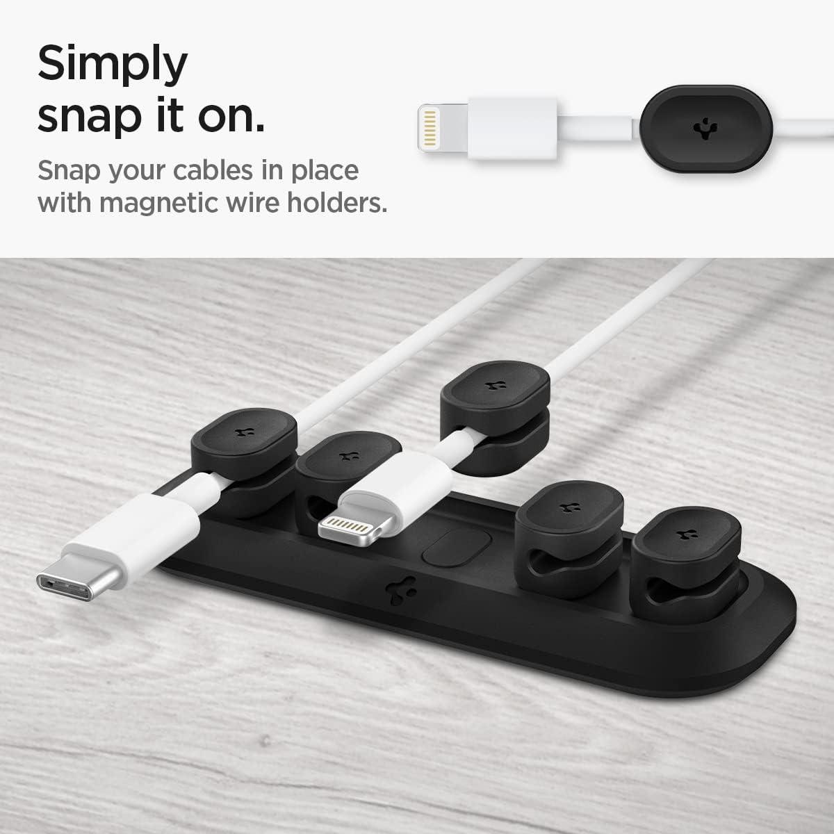 Spigen Magnetic Cable Holder, Cable Management, Desktop Multipurpose Cable Organizer, 6-Clip Cord Keeper for Lightning, and USB-A/USB-C Cables – Black (6 Clips/LD101)(Black (6 Clip))