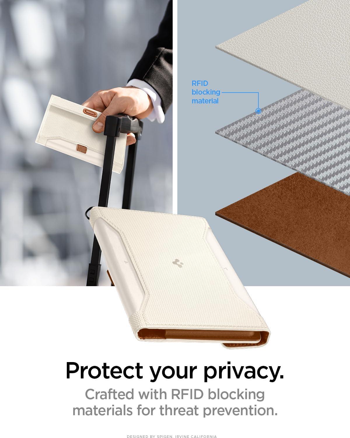 Spigen Life for Passport Card Cover Holder with RFID Blocking Technology Wallet Travel Documents Organizer Protector Accessories, SIM Card Pin Included(Dune Beige)