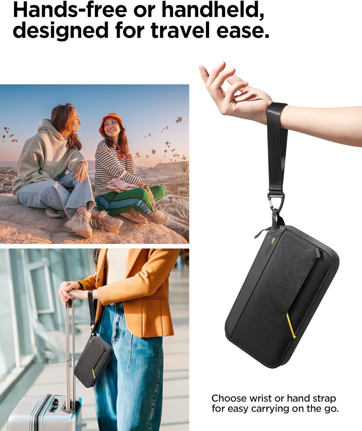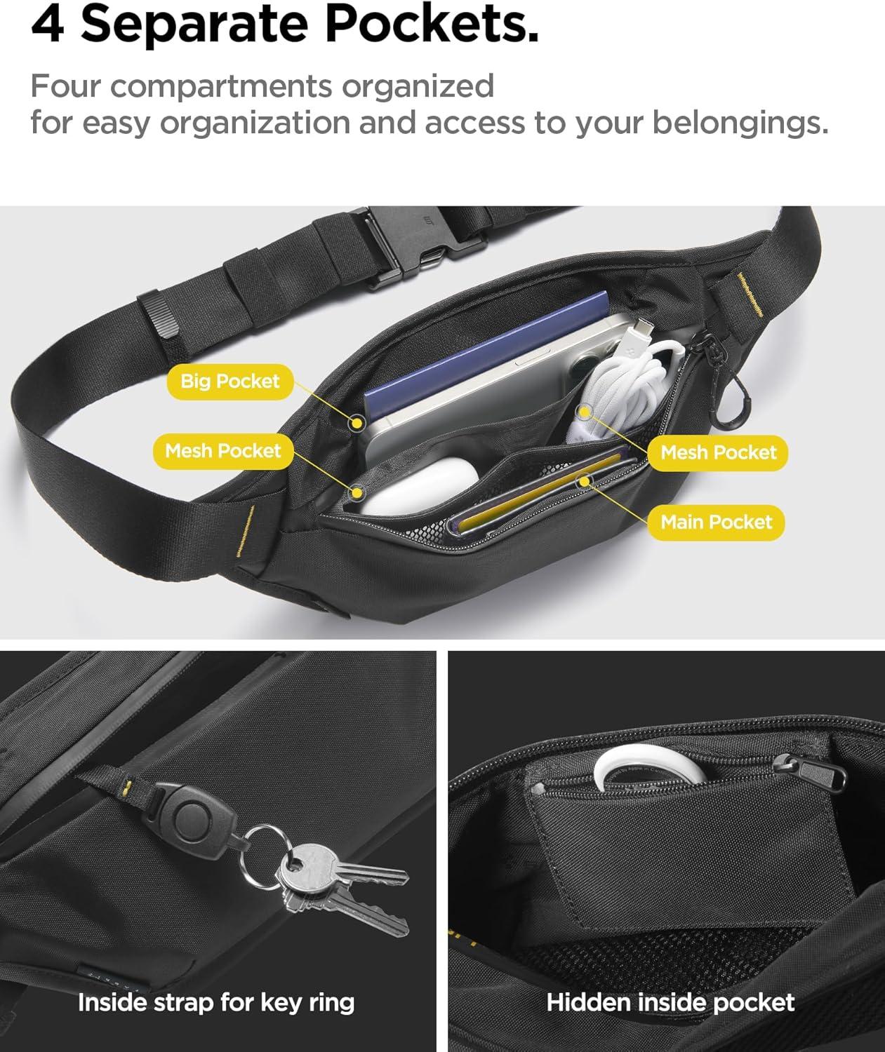 Spigen Life Fanny Pack for Passport Holder, Secure Hidden Travel Wallet with 4 Separate Pockets, Waist Bag, Water Resistant, Durable, Crossbody Bag with Adjustable Strap for Travel, Hiking, Sports(Sling Bag)