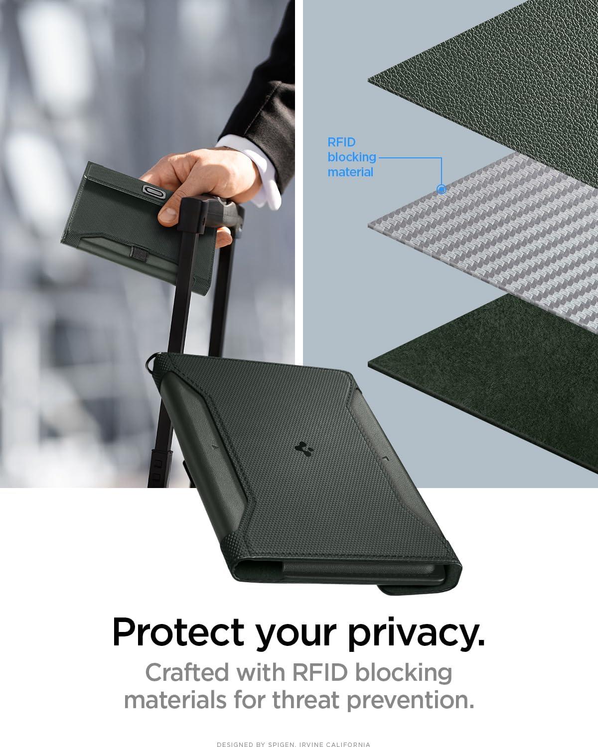 Spigen Life for Passport Card Cover Holder with RFID Blocking Technology Wallet Travel Documents Organizer Protector Accessories, SIM Card Pin Included(Military Green)