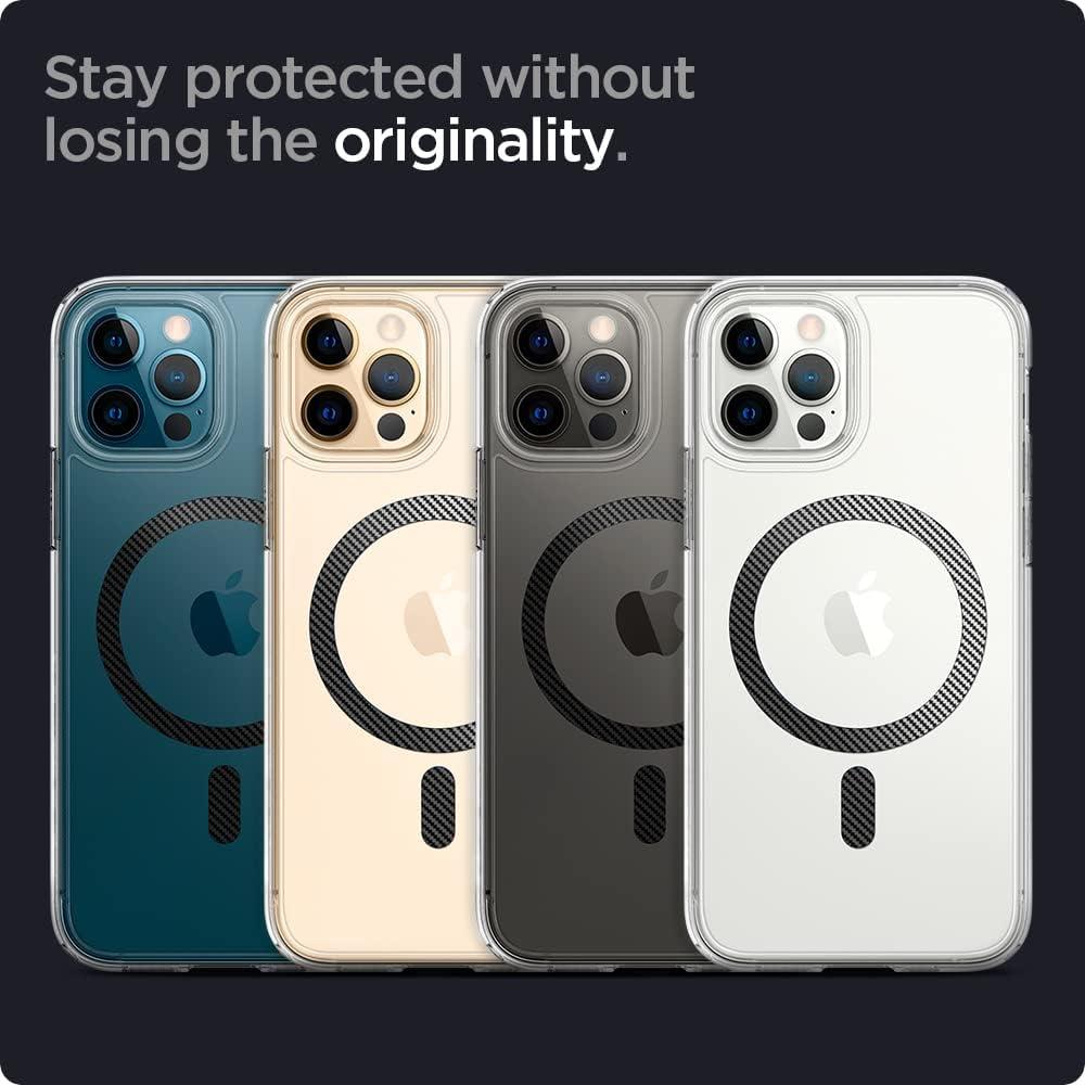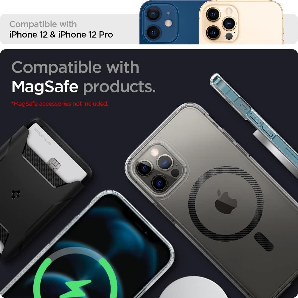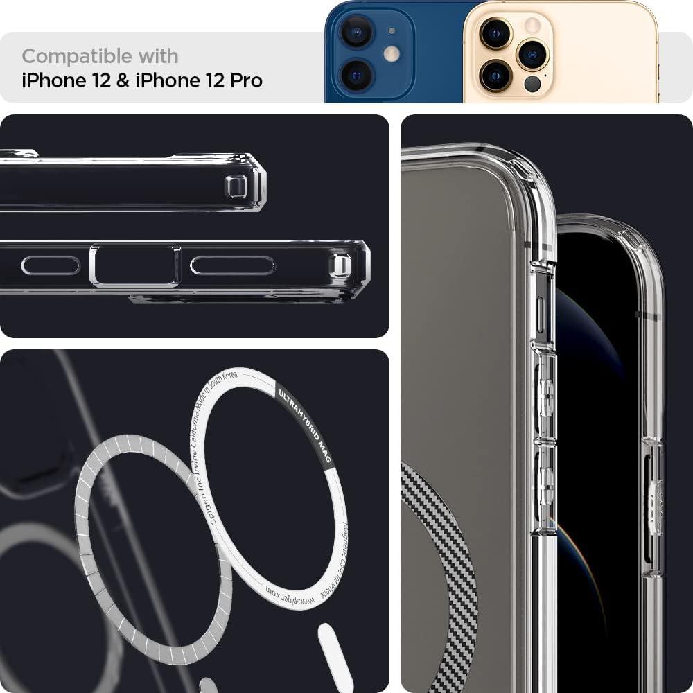 Spigen for iPhone 12 Pro Case & for iPhone 12, Ultra Hybrid MagFit [Anti-Yellowing] [Compatible with Magsafe] – Clear(Carbon Fiber)