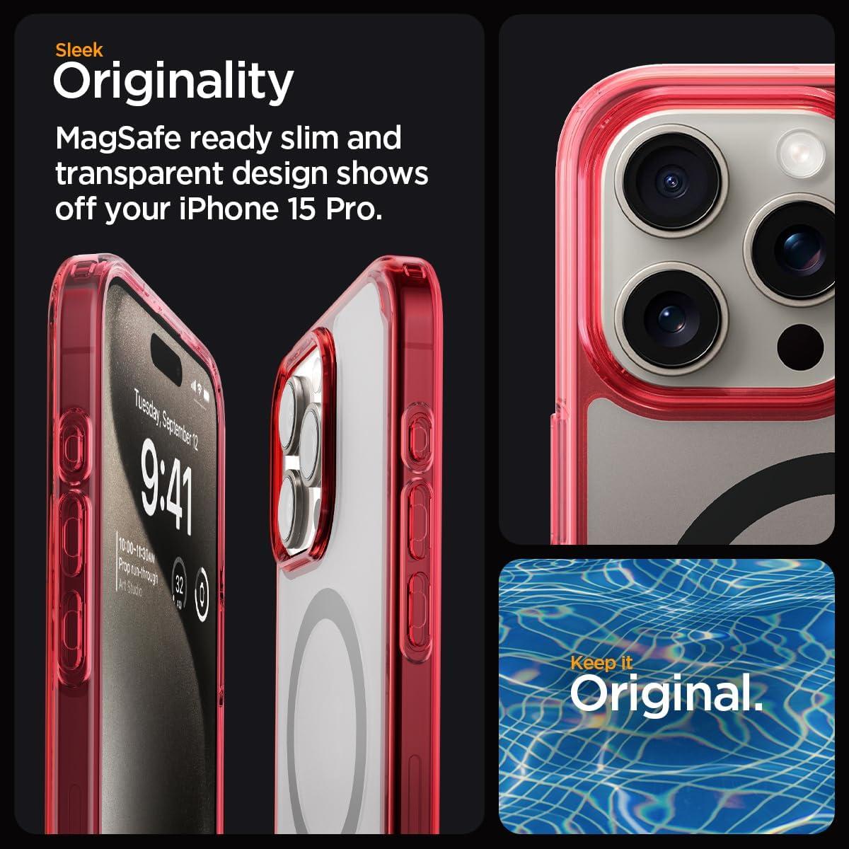 Spigen for iPhone 12 Pro Case & for iPhone 12, Ultra Hybrid MagFit [Anti-Yellowing] [Compatible with Magsafe] – Clear(Deep Red)