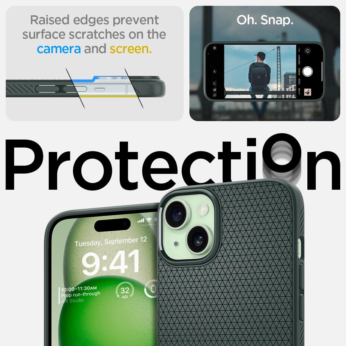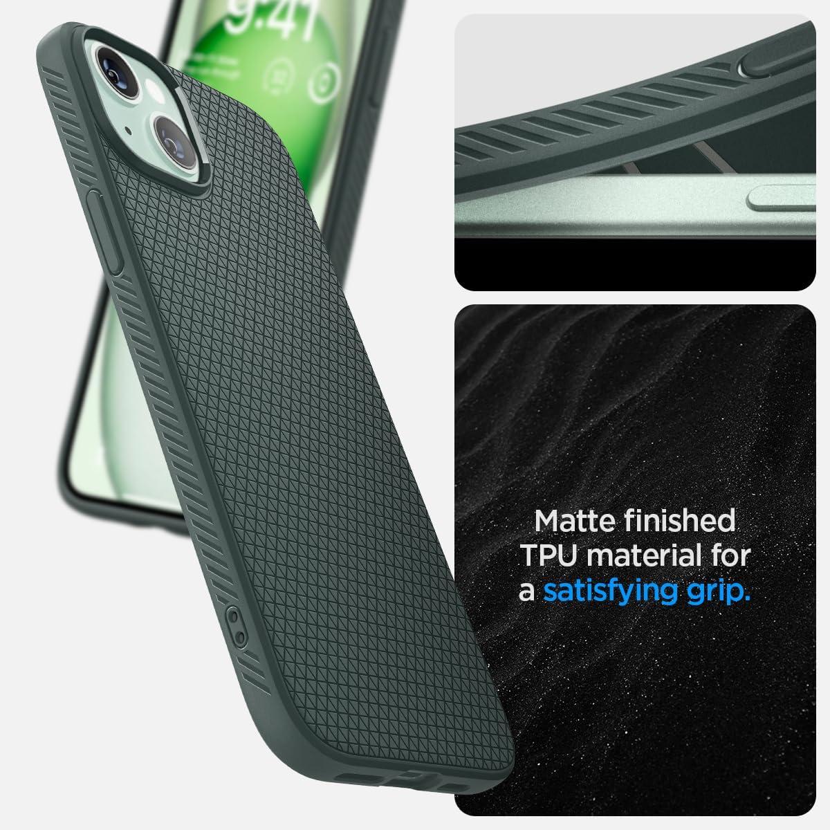 Spigen Liquid Air Designed for iPhone 14 Case (2022) [Military-Grade Protection] – Matte Black(Abyss Green)