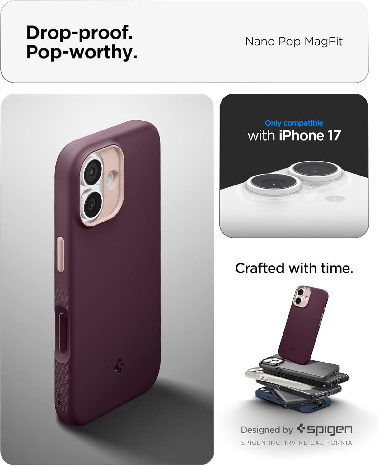 Spigen for iPhone 17 Pro Max Case, Nano Pop MagFit [TPU Covered Camera Control] [Compatible with MagSafe] – Black Sesame(Burgundy Bean)