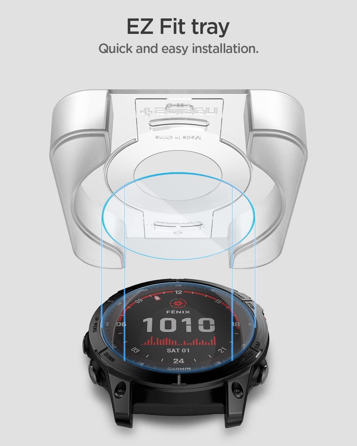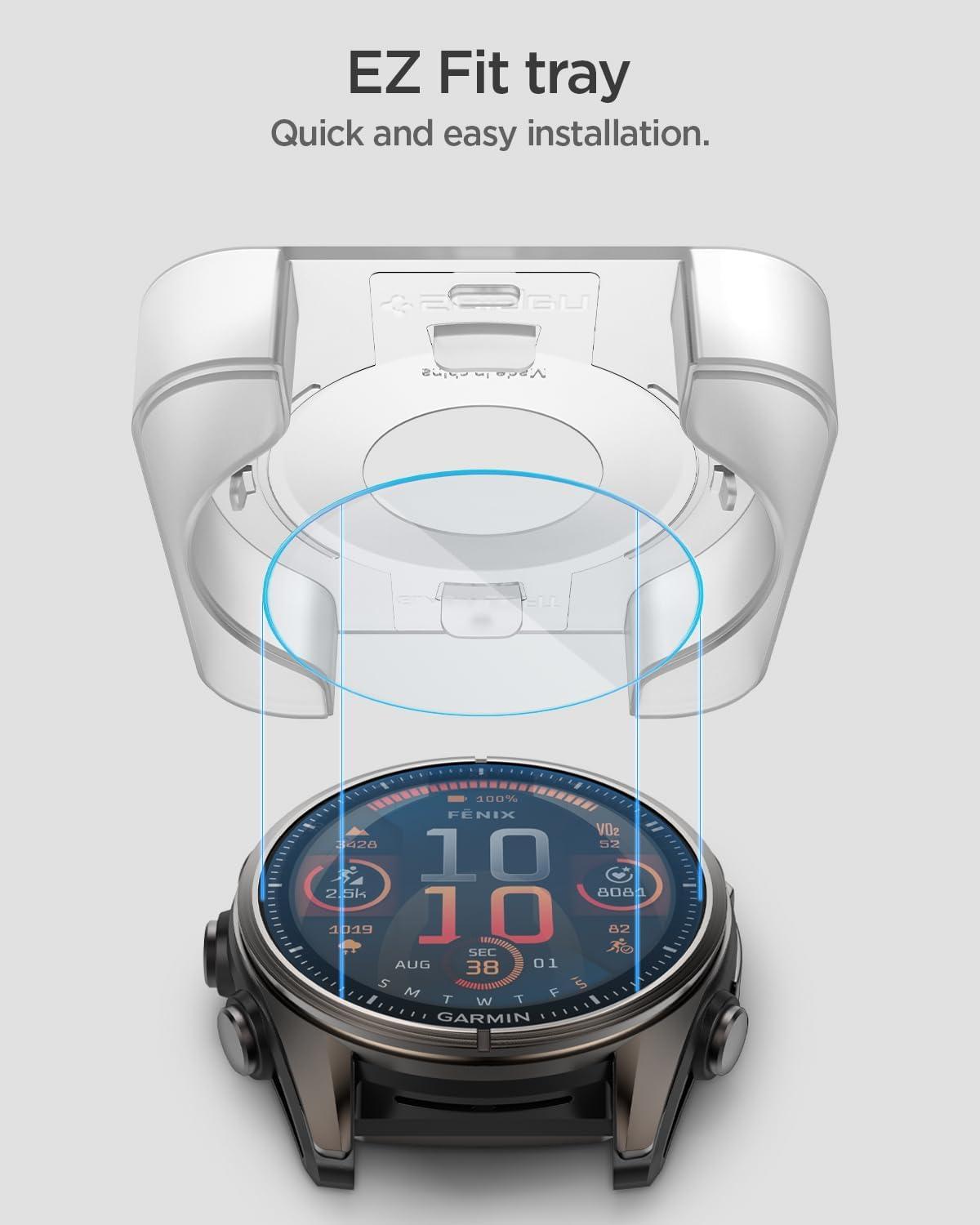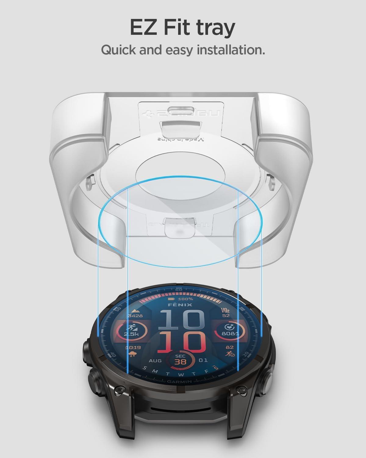 Spigen Tempered Glass Screen Protector [GlasTR EZ FIT] designed for Garmin Fenix 8, 8 Pro/Fenix 7X series/Epix Pro (51mm) – 2 Pack(Fenix 8 / Fenix 7X series / Epix Pro (51mm))
