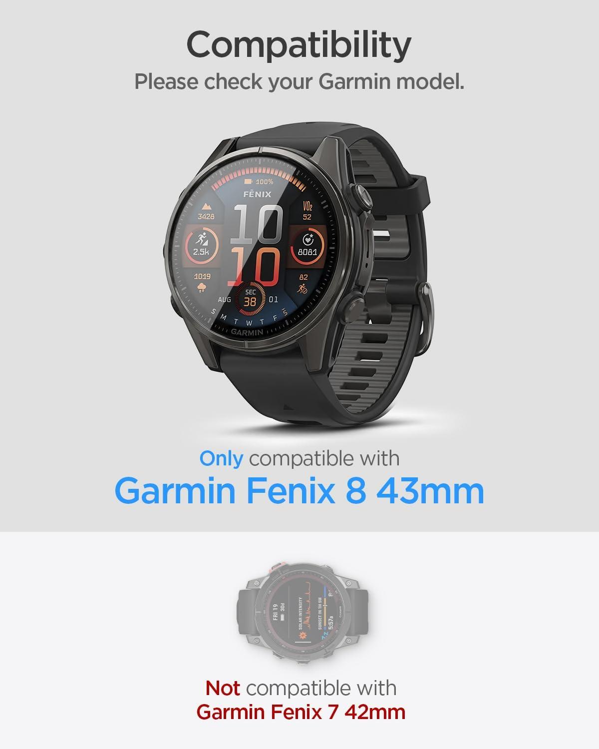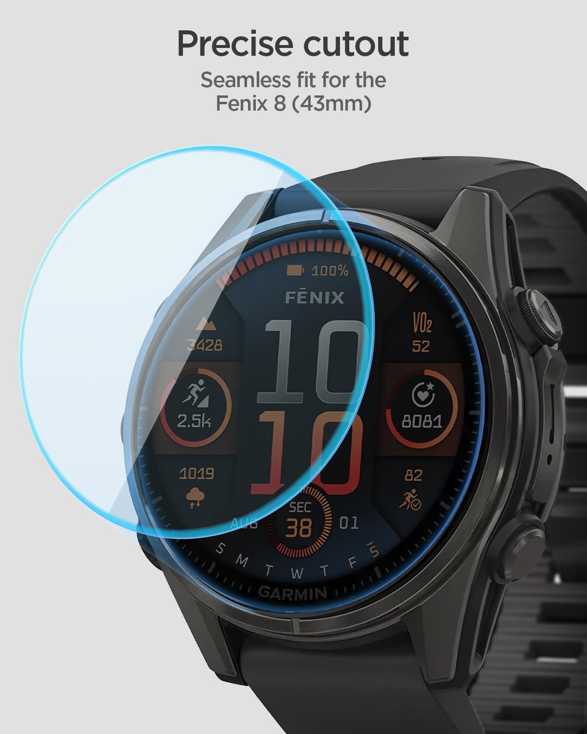 Spigen Tempered Glass Screen Protector [GlasTR EZ FIT] designed for Garmin Fenix 8, 8 Pro/Fenix 7X series/Epix Pro (51mm) – 2 Pack(Fenix 8 (43mm))