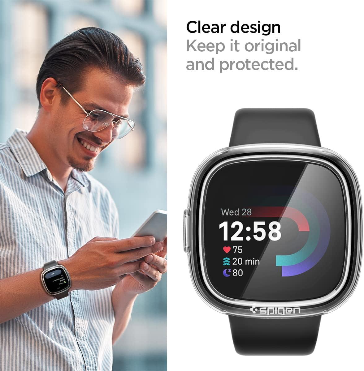Spigen Ultra Hybrid Designed for Fitbit Versa 4 / Sense 2 with Tempered Glass Screen Protector Smartwatch Cover – Crystal Clear