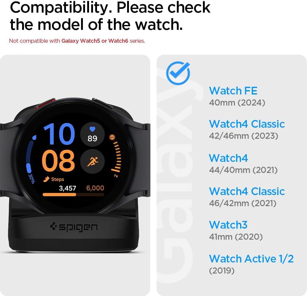 Spigen S352 Designed for Galaxy Watch FE, 4, 4 Classic, 3, Active Stand – Black(Black)