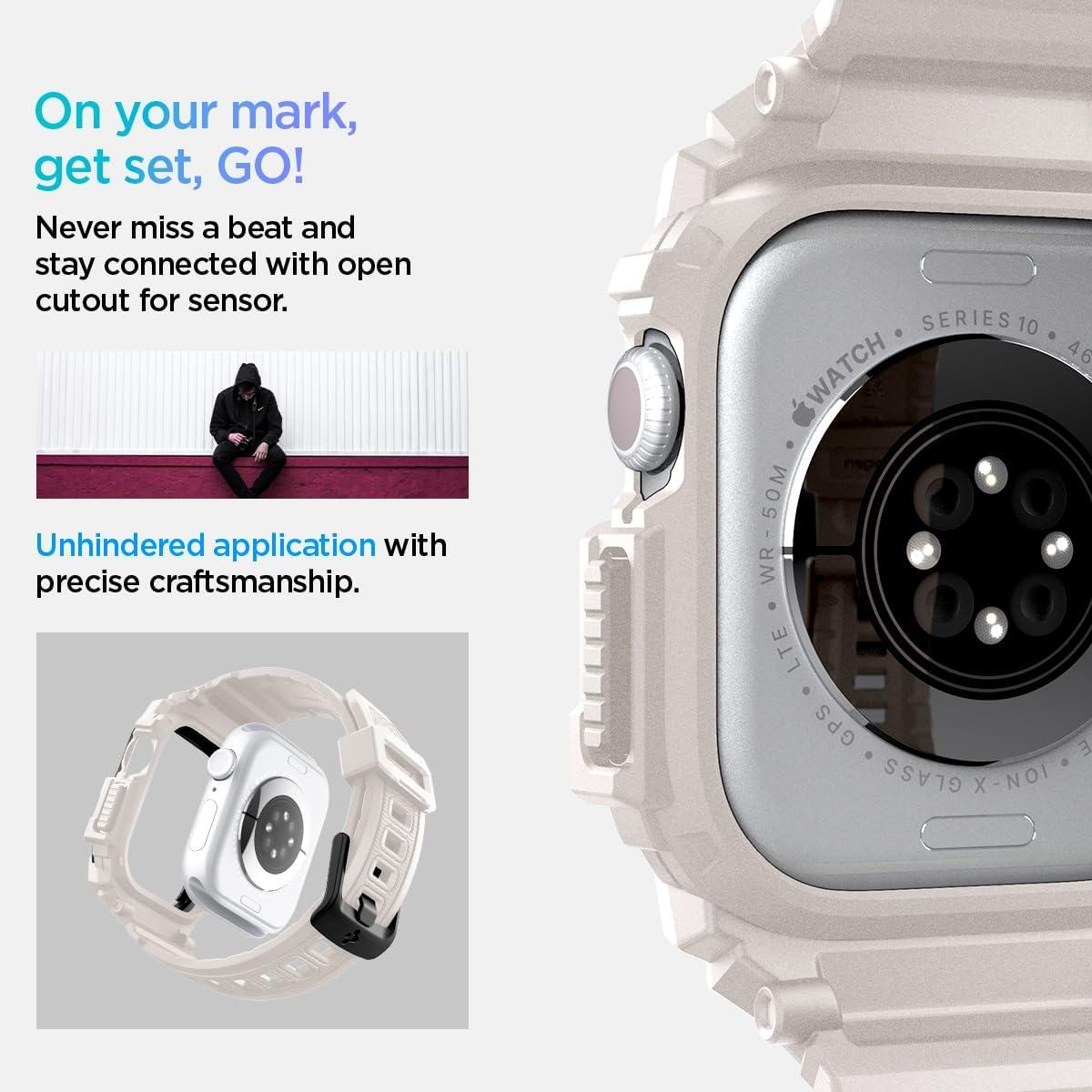 Spigen for Apple Watch Series 11/10 46mm Band with Case, Rugged Armor Pro Cover with Strap(Dune Beige)