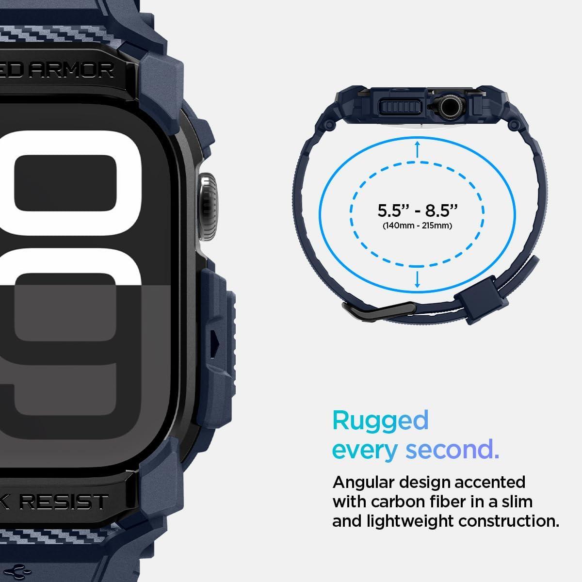 Spigen for Apple Watch Series 11/10 46mm Band with Case, Rugged Armor Pro Cover with Strap(Navy Blue)