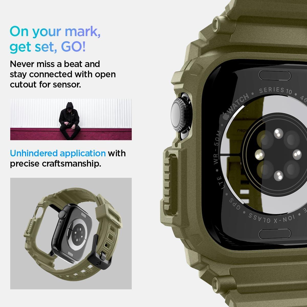 Spigen for Apple Watch Series 11/10 46mm Band with Case, Rugged Armor Pro Cover with Strap(Vintage Khaki)