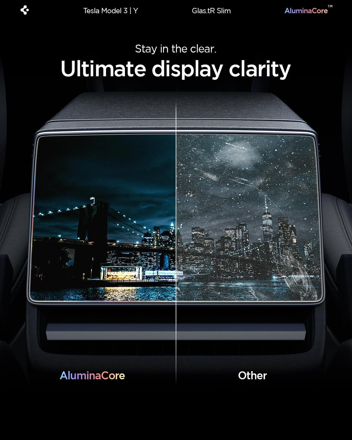 Spigen Tempered Glass Screen Protector [GlasTR Slim] designed for Tesla Model 3 (2024/2025/2026), Model Y Juniper (2025/2026) 8″ Rear Touchscreen – Matte/Anti Finger Print(8″ Touchscreen hinten)