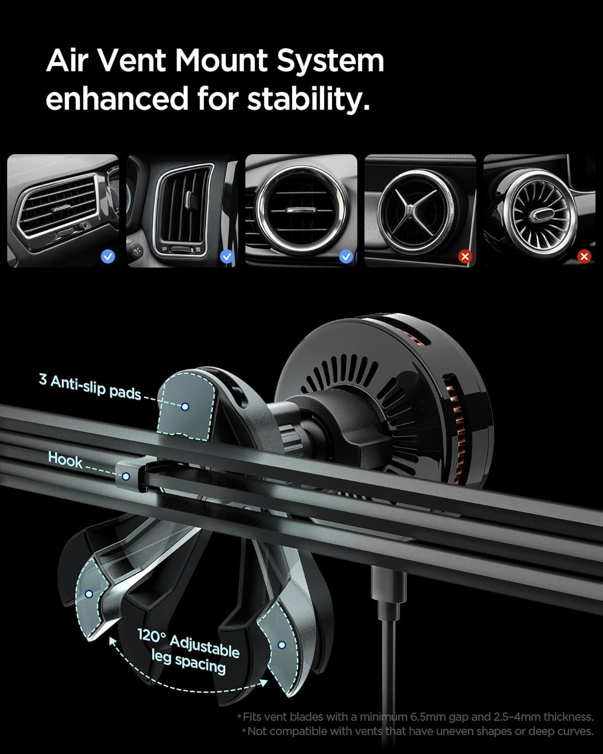Spigen Cryomax MagFit Qi2.2 25W MagSafe Car Mount Wireless Charger [Ultra-Fast Charging Function w/Active Peltier Cooling] (Requires 45W Charging Adapter) Compatible with iPhone 17 16 15 14 13 Series(25W Qi 2.2 Peltier Cooling)
