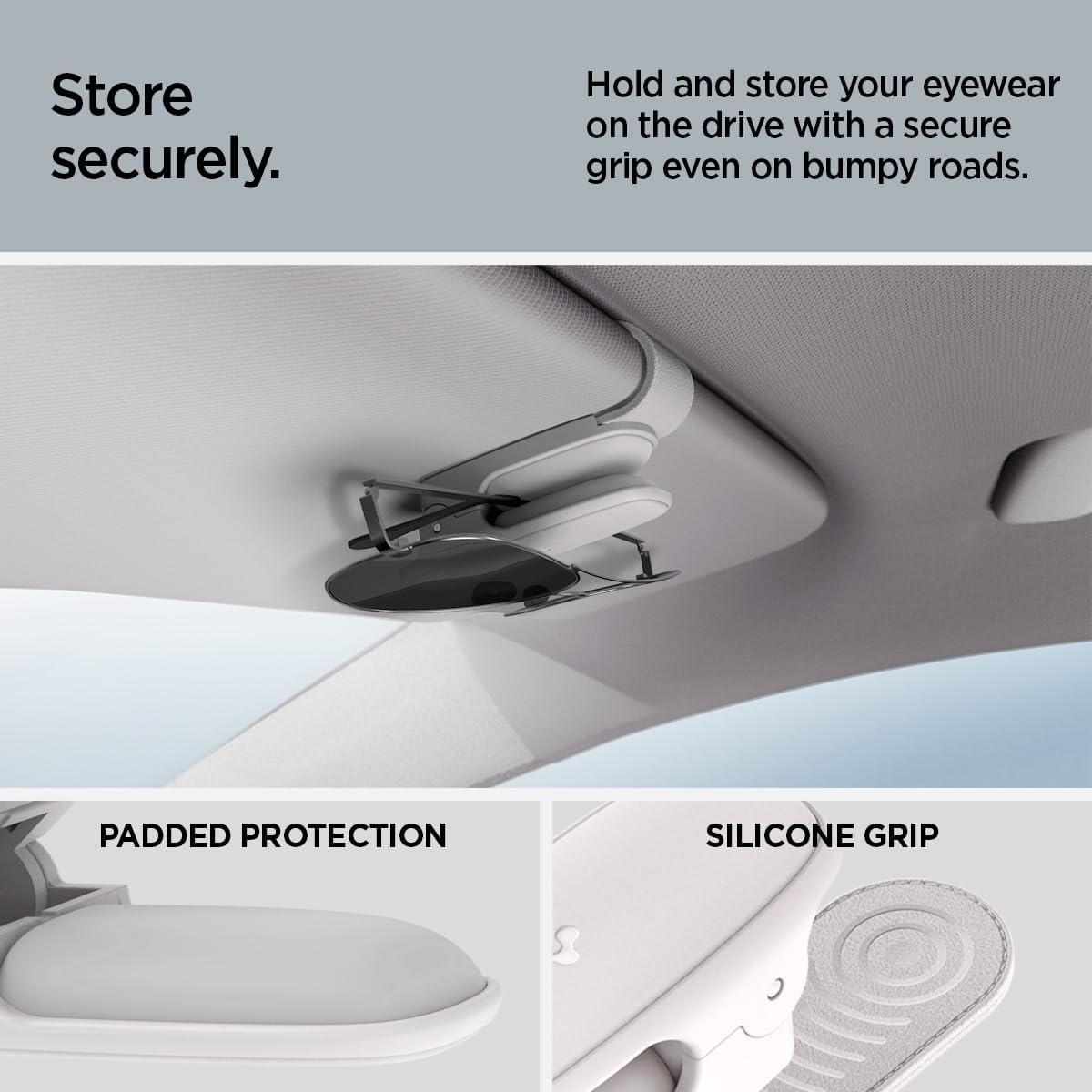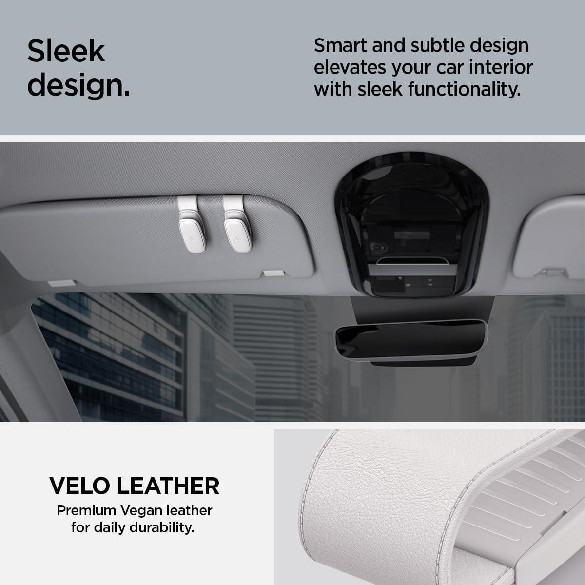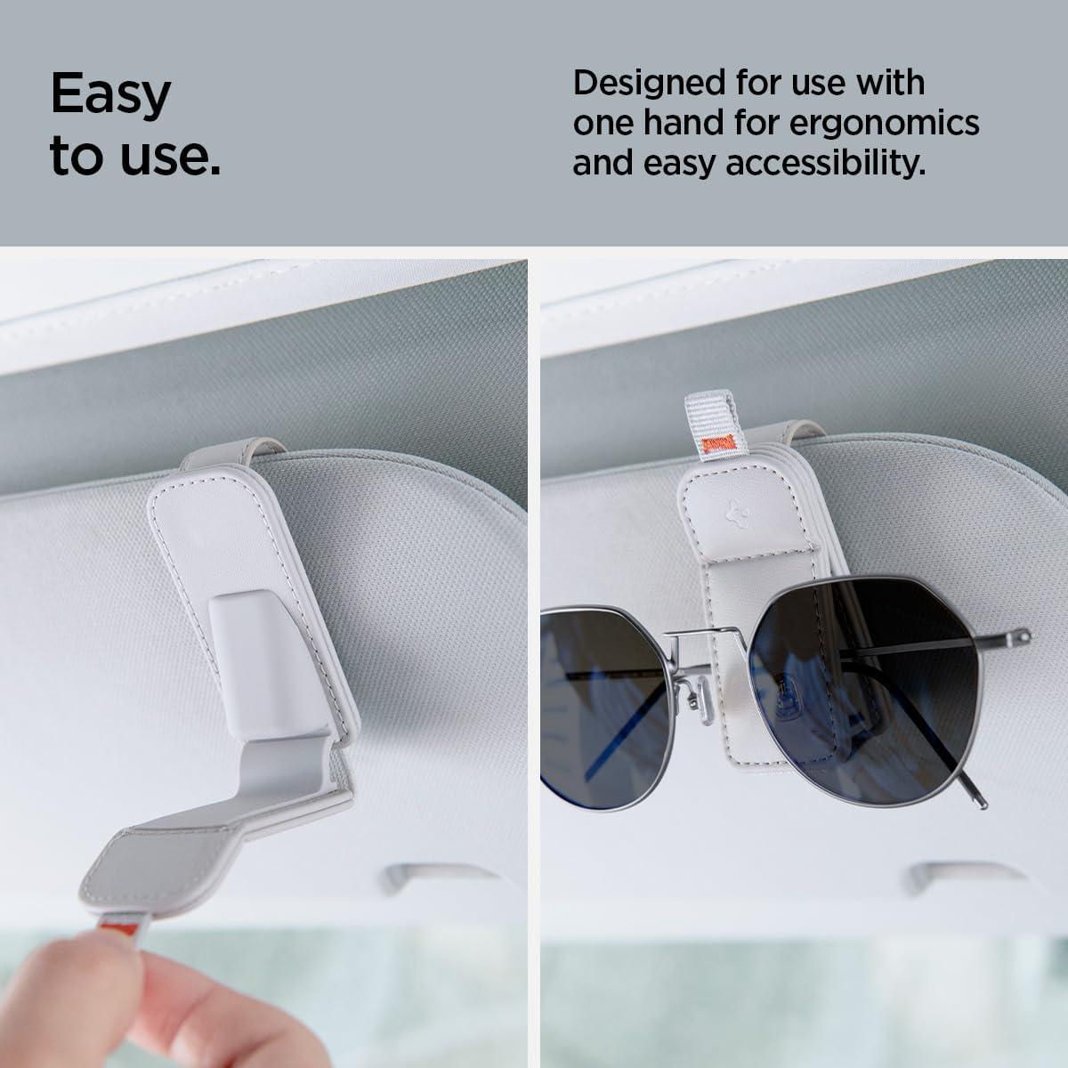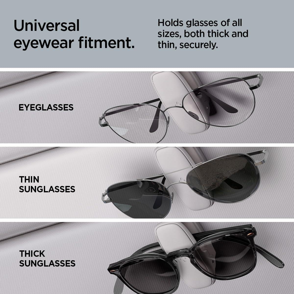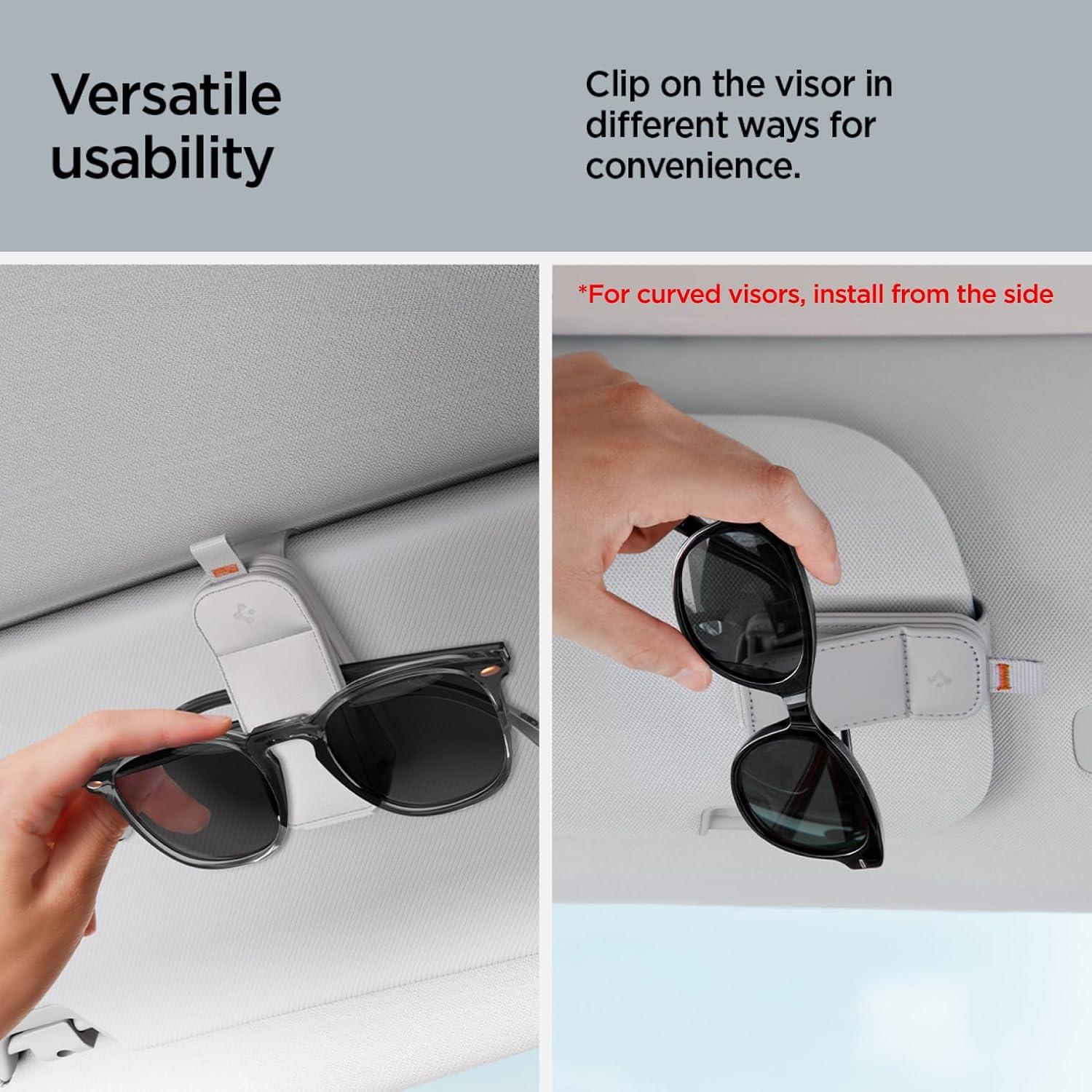 Spigen 2 Pack Magnetic Vegan Leather Sunglass Holder for Car Sun Visor – Eyeglasses, Sunglasses, Ticket Card Clip for Cars – Car Sun Visor Accessories – (Black)(Gray)