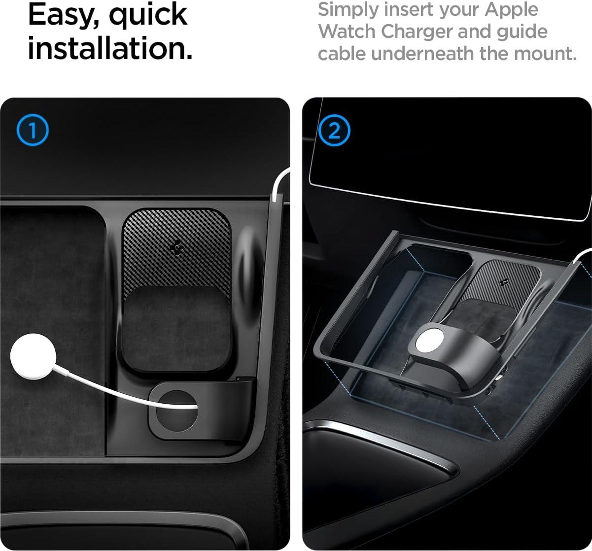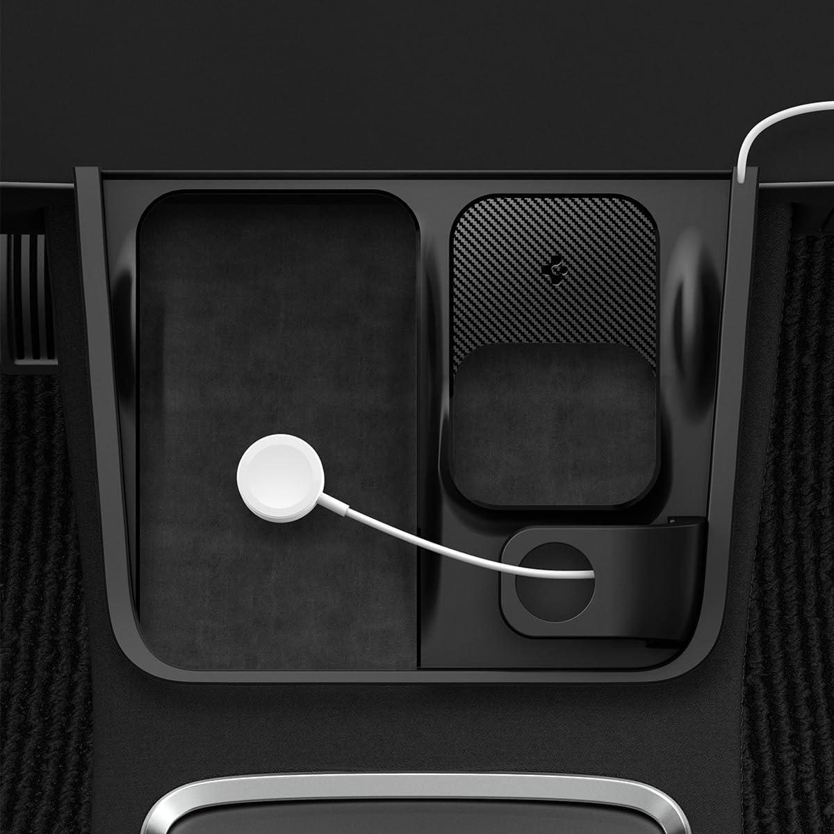 Spigen 3-in-1 Organizer Mount for Legacy Tesla Model Y 2022-2024 & Model 3 2022-2023 (Watch Charger Not Included) – Uses Tesla Wireless Charging Pad – for iPhone, AirPods, Apple Watch(Model 3 (2022-23) & Y (2022-2024))