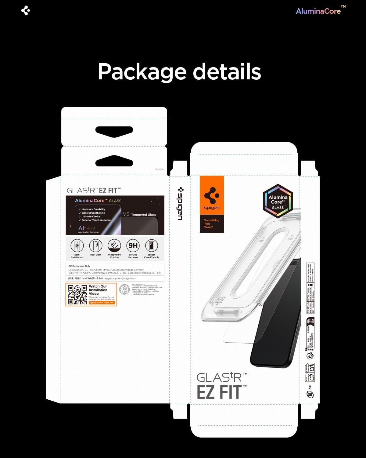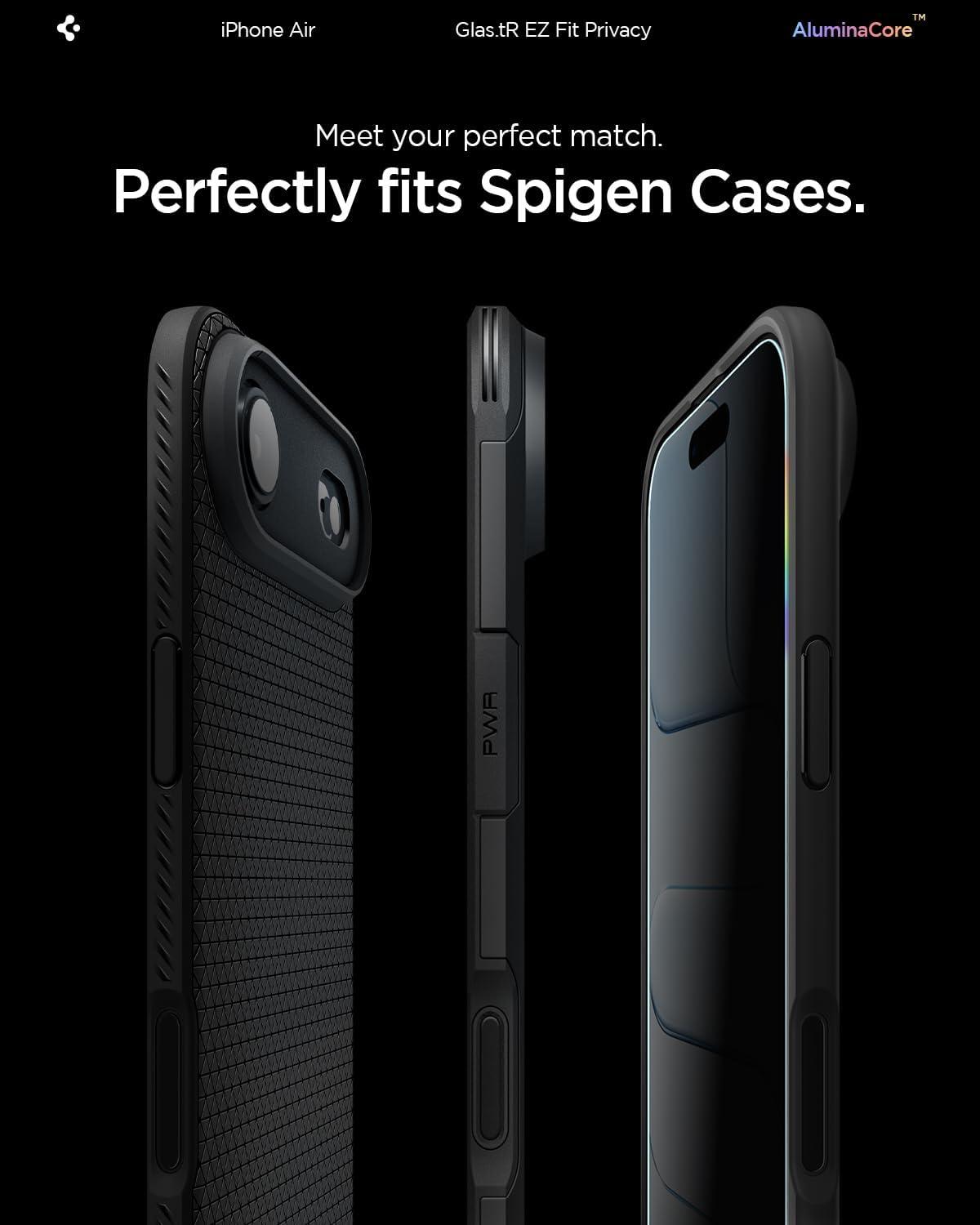 Spigen AluminaCore Tempered Glass Screen Protector [Glas.tR EZ Fit – Privacy] designed for iPhone 17 Pro | iPhone 17 | iPhone 16 Pro [2 Pack] 9H+ Hardness, Aluminum-Enhanced Durability | Tempered Glass, Privacy(iPhone Air)