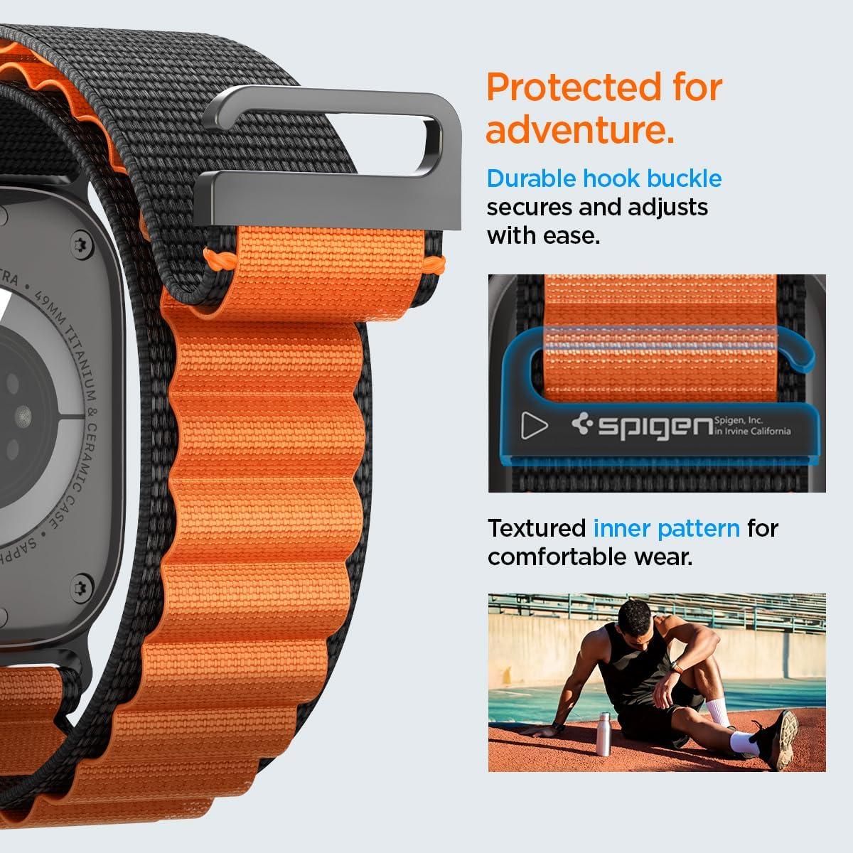 Spigen for Apple Watch Band, Compatible with Ultra 3/2/1 49mm, Series 11/10 46mm, 9/8/7 45mm, SE3/SE2/SE/6/5/4 44mm, 3/2/1 42mm Lightweight Fabric Strap(Black Orange)