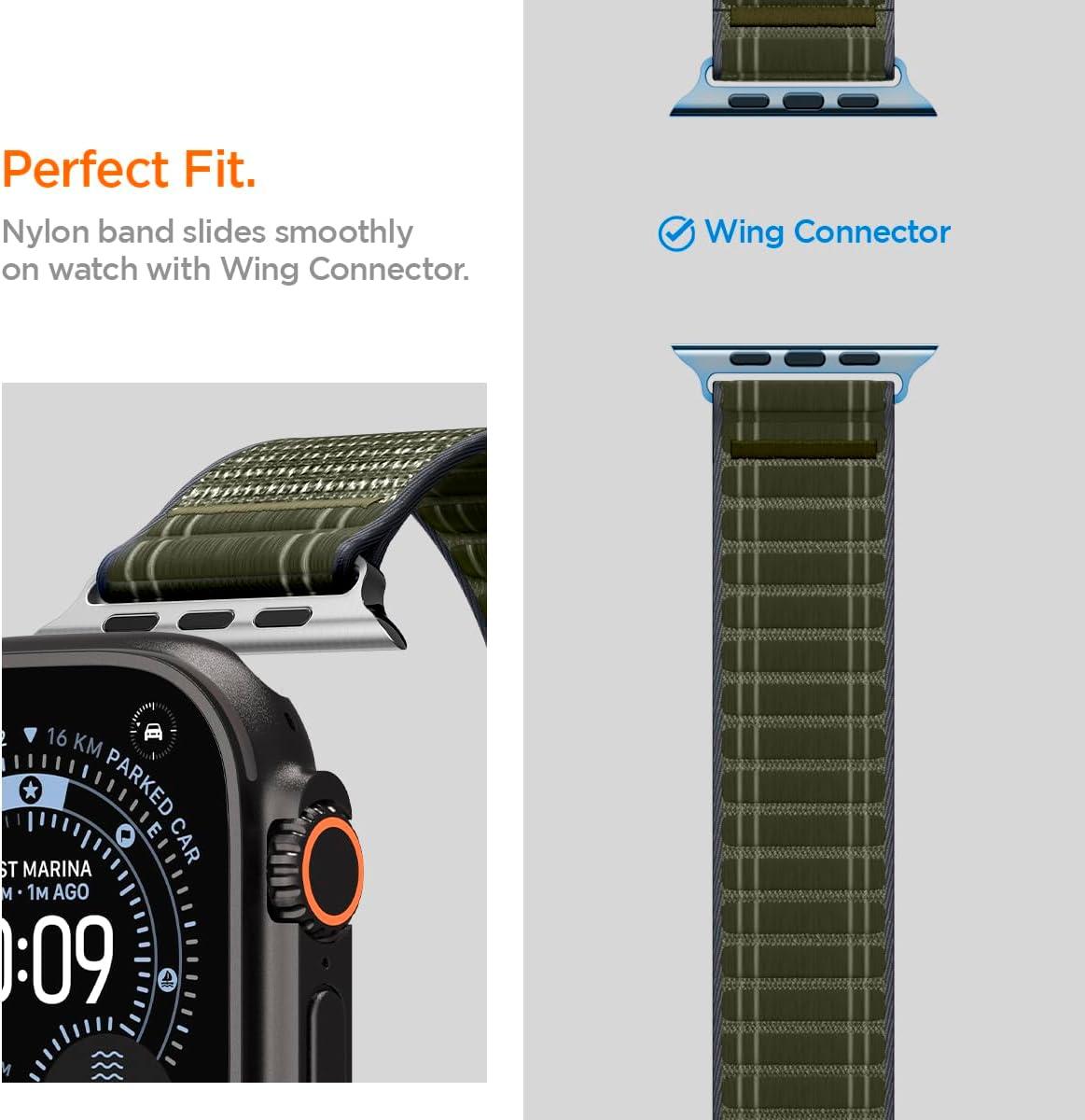 Spigen for Apple Watch Band, Compatible with Ultra 3/2/1 49mm, Series 11/10 46mm, 9/8/7 45mm, SE3/SE2/SE/6/5/4 44mm, 3/2/1 42mm Lightweight Fabric Strap(Green)