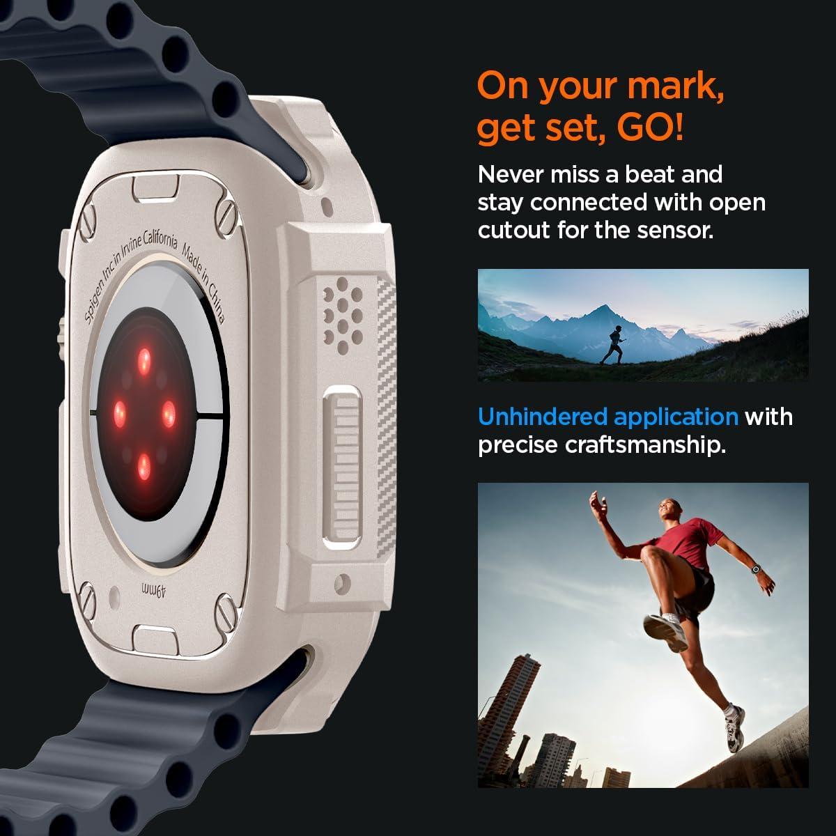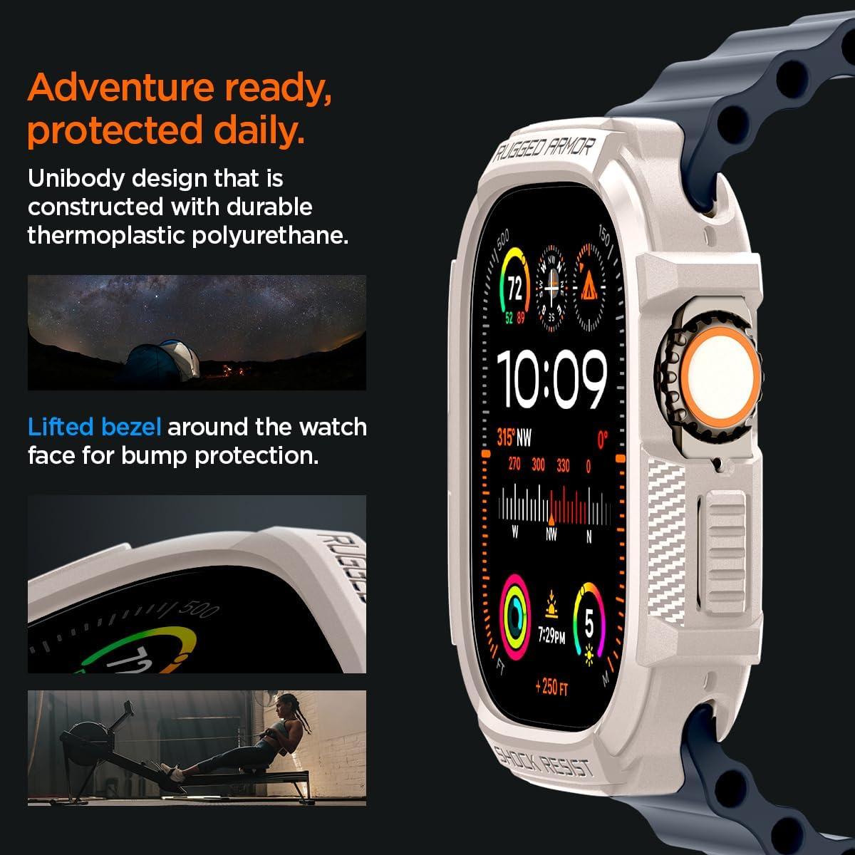 Spigen for Apple Watch Ultra 3/2/1 Case, Rugged Armor 49mm Durable TPU Cover – Dark Gray(Dune Beige)