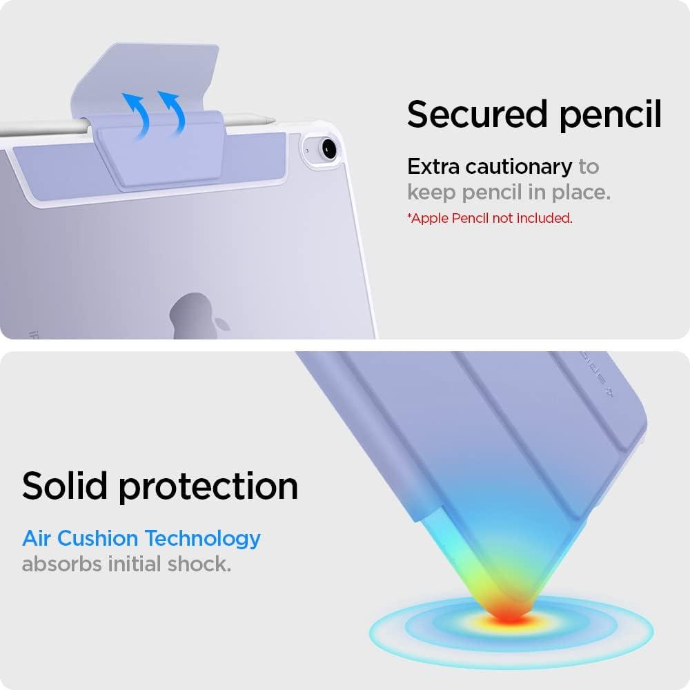 Spigen for iPad Air 11 Inch Case M3/M2 (2025-2024), 10.9 Inch 5th/4th Generation Case (2022/2020), Ultra Hybrid Pro Tri-Fold Cover Transparent Back and with Pencil Holder, Black(Lavender)