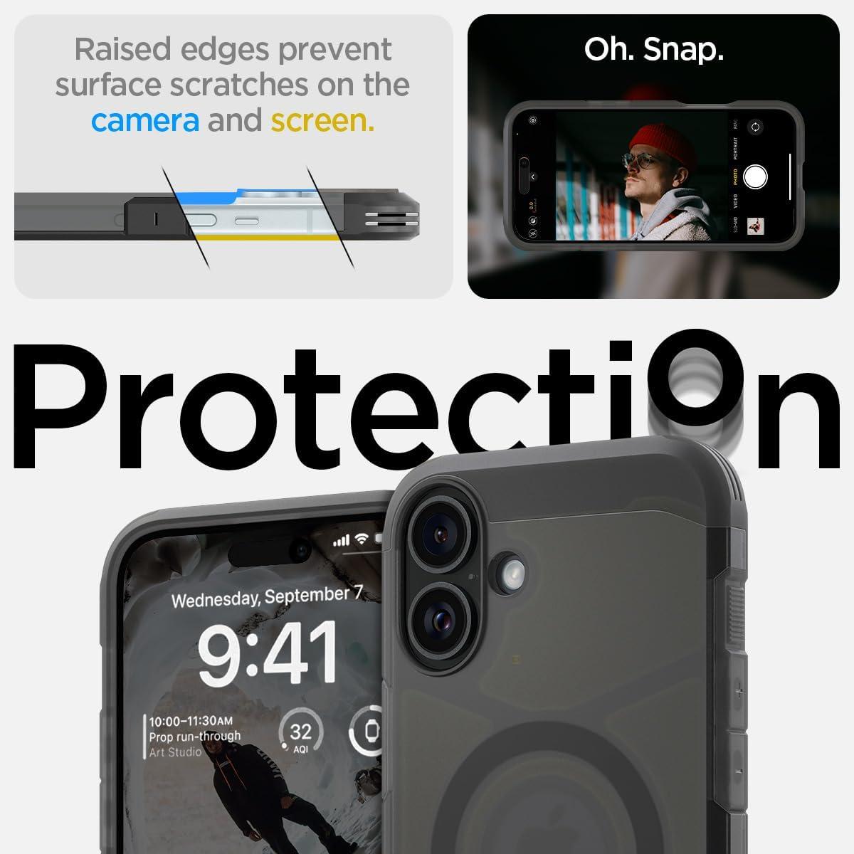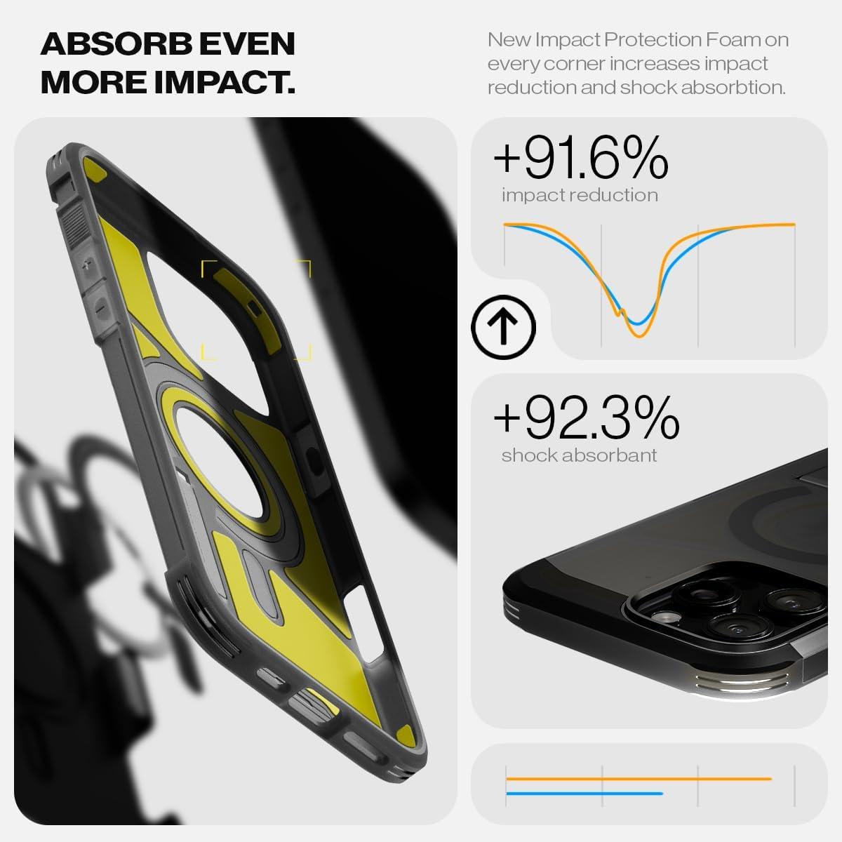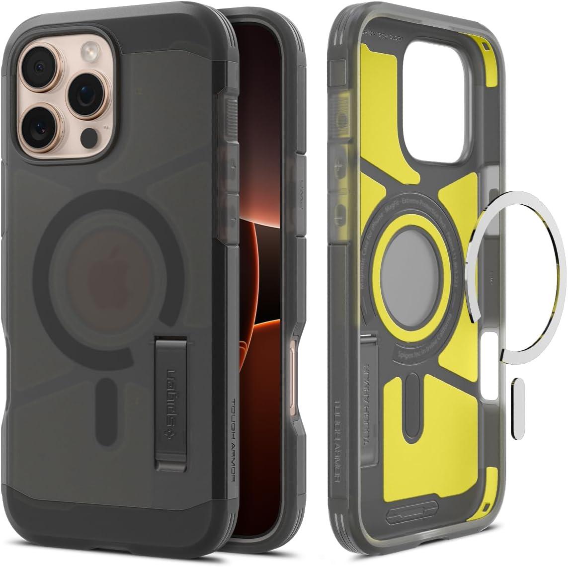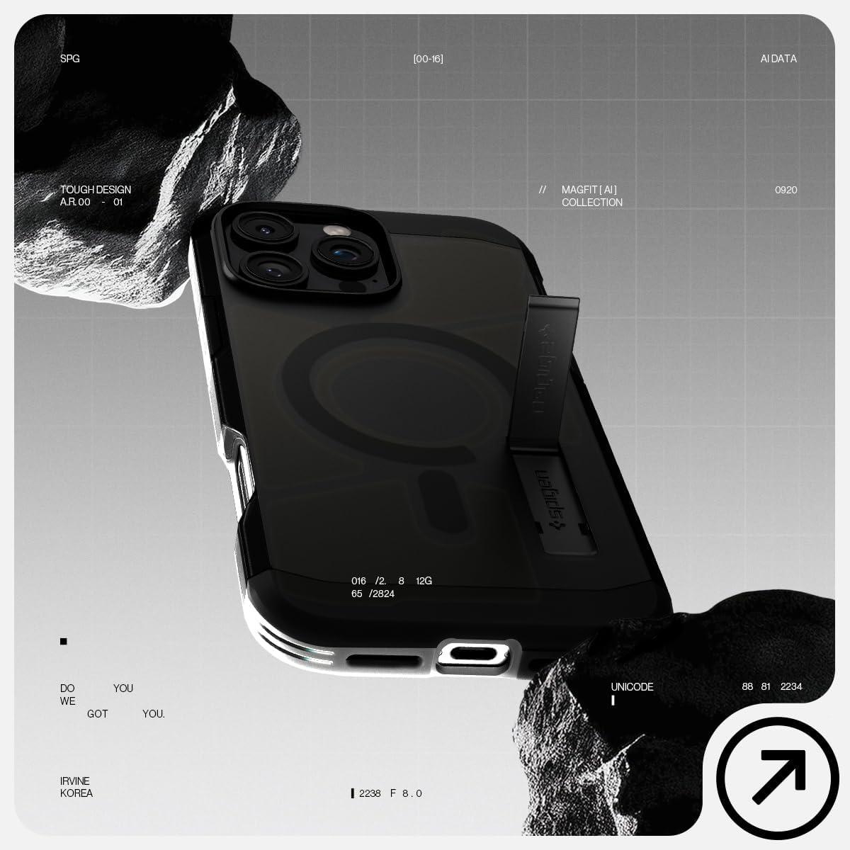 Spigen for iPhone 16 Case, Tough Armor (Ai) MagFit [Compatible with Magsafe] [Kickstand] [Military-Grade Protection] – Black(Frost Black)