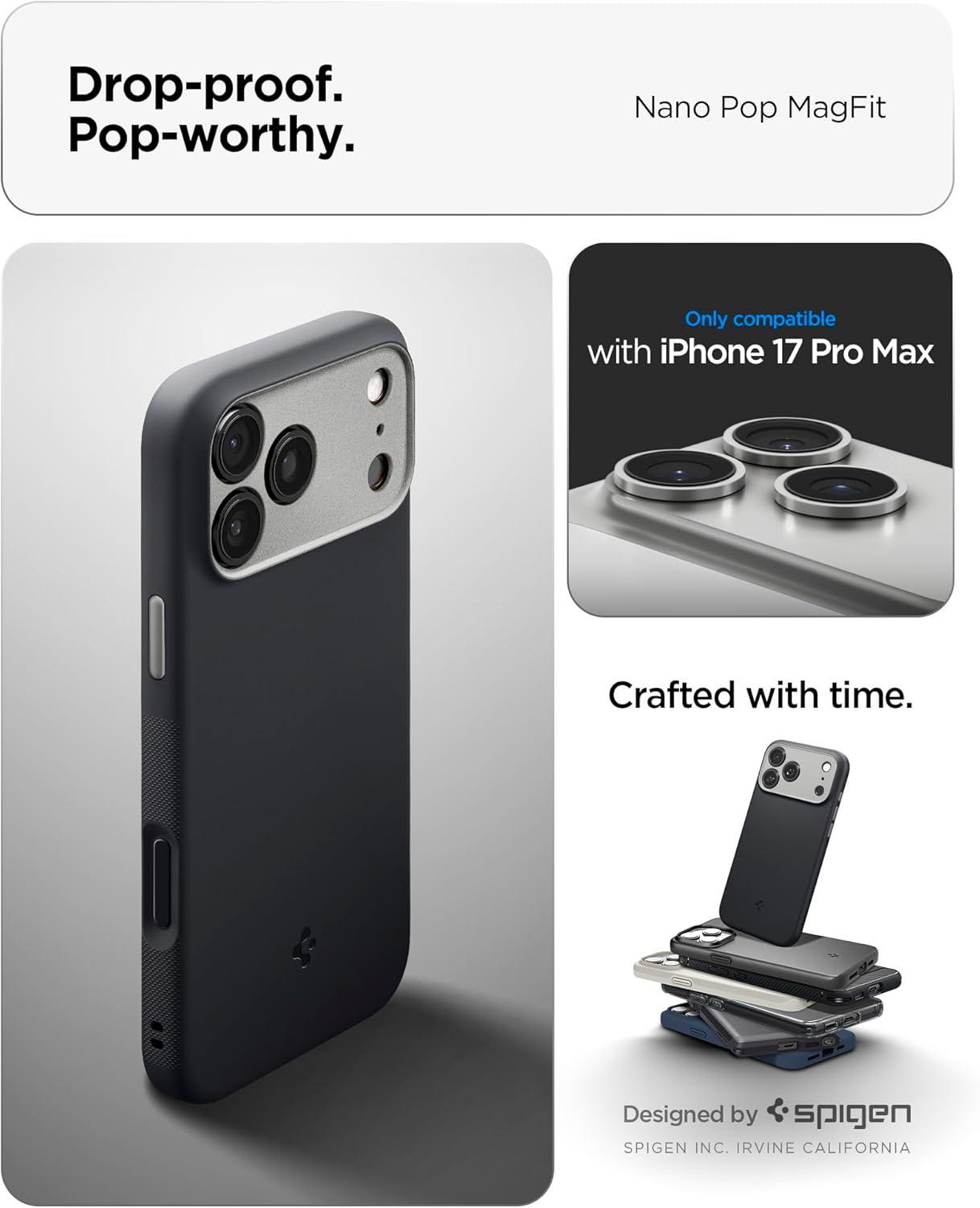 Spigen for iPhone 17 Pro Max Case, Nano Pop MagFit [TPU Covered Camera Control] [Compatible with MagSafe] – Black Sesame(Black Sesame)