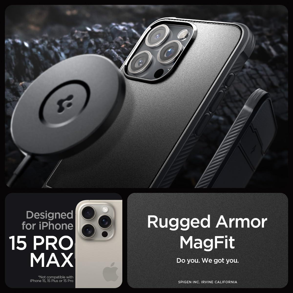 Spigen for iPhone 17 Pro Max Case, Rugged Armor MagFit [TPU Covered Camera Control] [Compatible with MagSafe] – Matte Black(Matte Black)