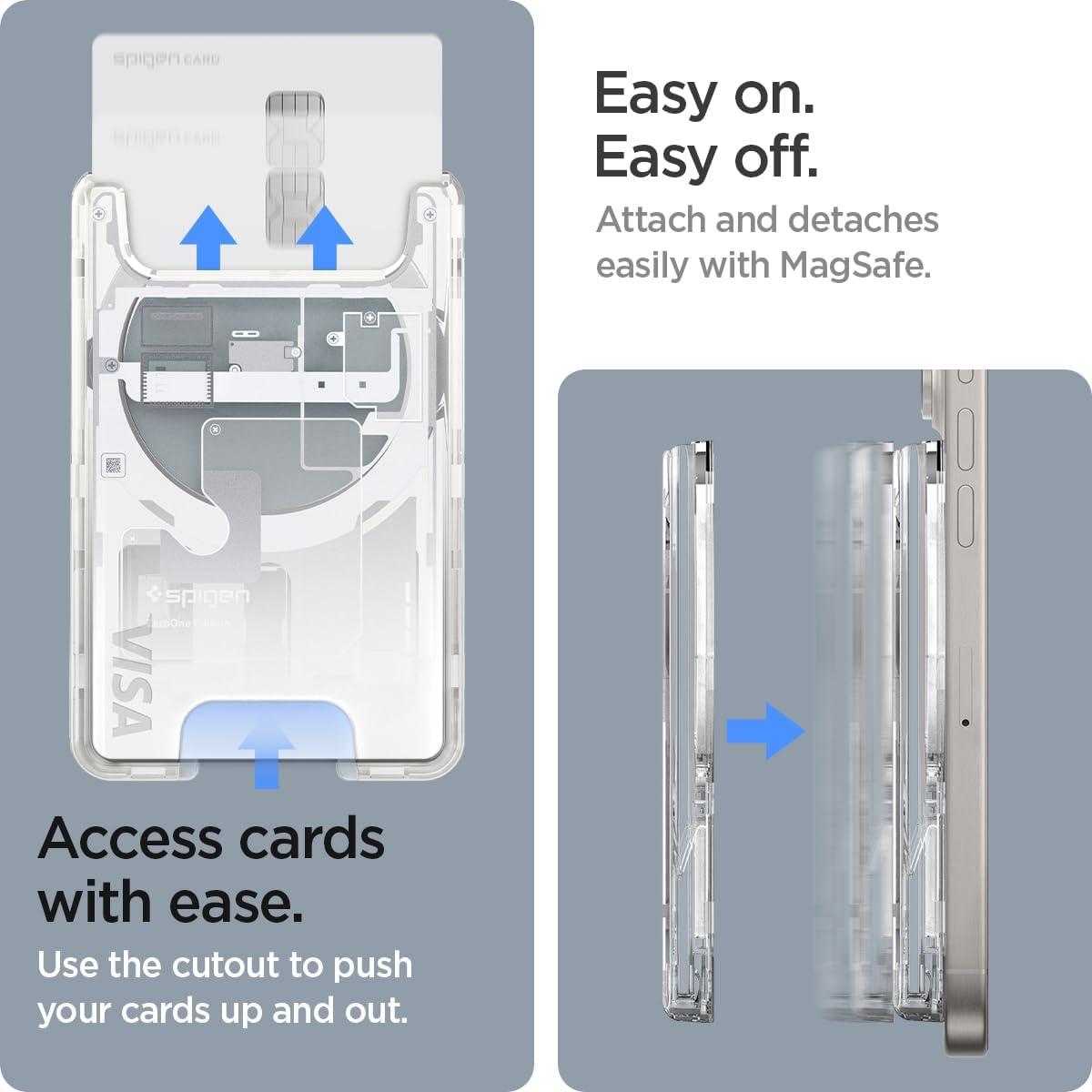 Spigen for MagSafe Wallet, Holds 3 Cards, Compatible with iPhone 17/16/15/14/13/12, Pixel 10 Series, MagSafe-Case, Pixelsnap, and Plaud Note, Transparent Card Holder – Classic C1 Graphite(Zero One White)