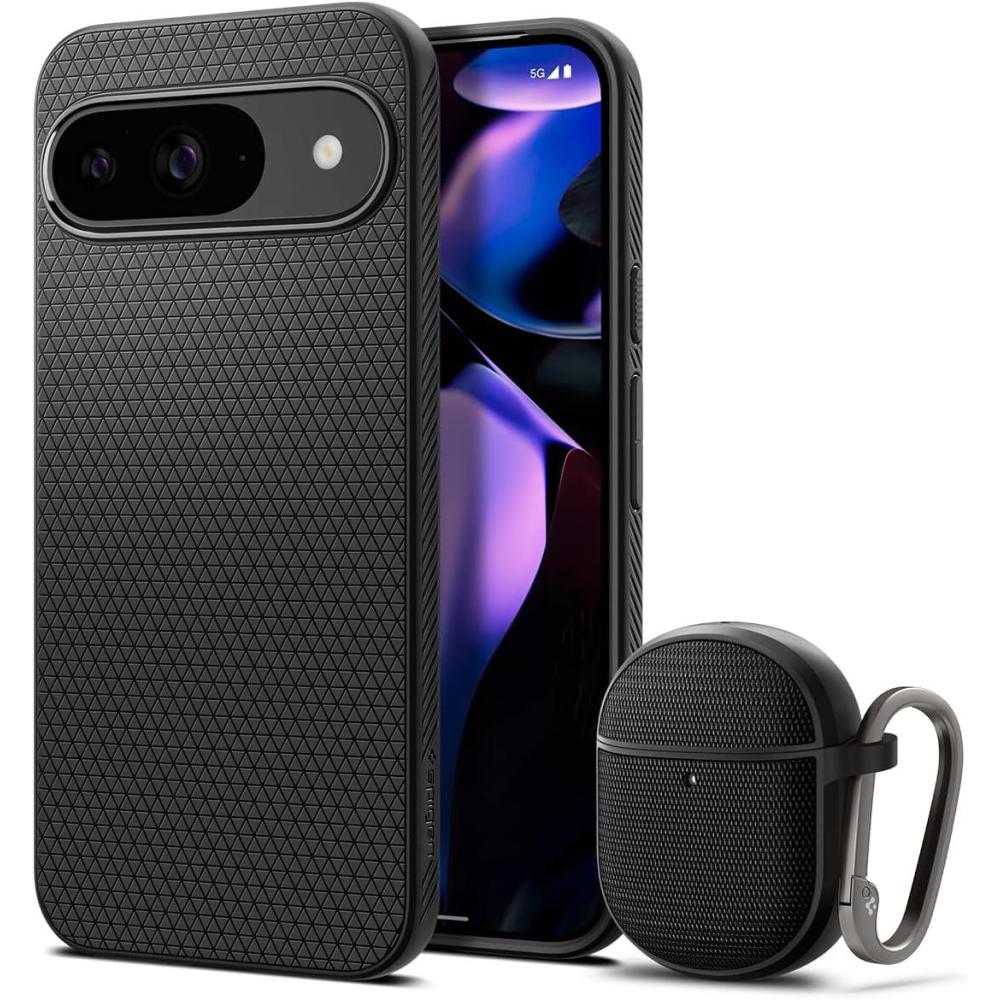 Spigen Liquid Air Pixel 9/Pixel 9 Pro Case and Classic Fit Pixel Buds Pro 2 Case (2024) Bundle – Matte Black