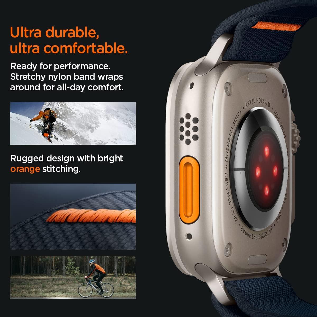 Spigen Lite Fit Ultra Strap Designed for Apple Watch Band Compatible with Ultra 3/2/1 49mm, Series 11/10 46mm, 9/8/7 45mm, SE3/SE2/SE/6/5/4 44mm, 3/2/1 42mm Nylon Solo Loop – Orange(Navy)