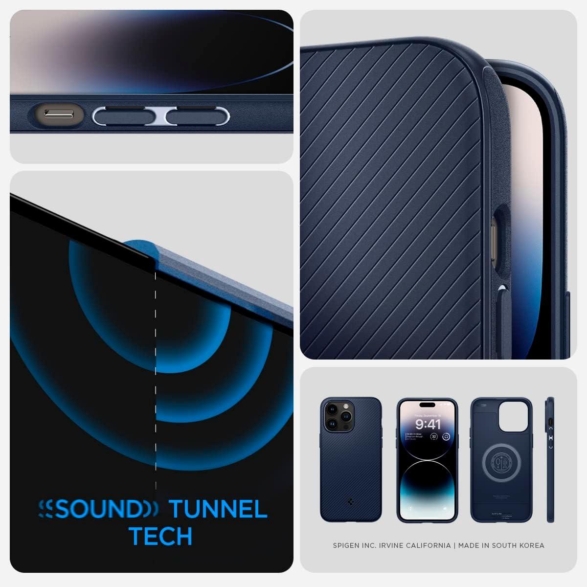 Spigen Mag Armor MagFit Designed for iPhone 14 Pro Case (2022) [Military-Grade Protection] Compatible with MagSafe – Matte Black(Navy Blue)