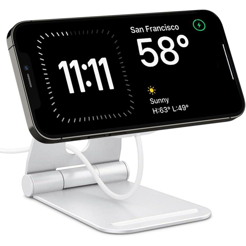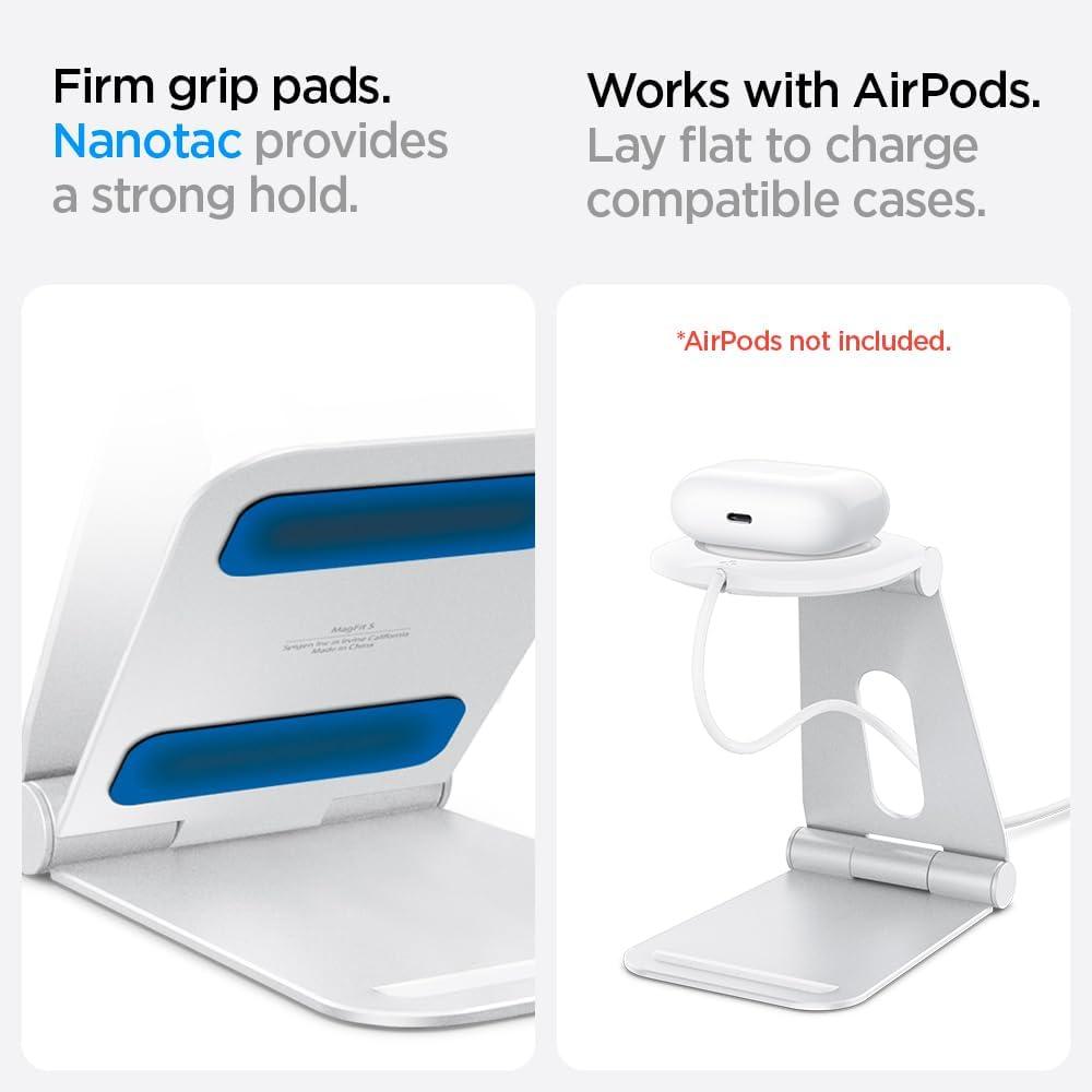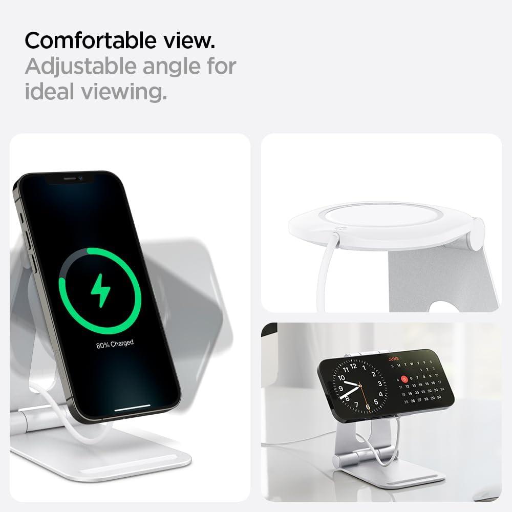 Spigen Mag Fit S Designed for MagSafe Charger Stand Aluminum Adjustable Phone Stand Compatible with iPhone 15/14/13/12 Series, AirPod Pro, AirPod Pro 2, AirPod 3 Charging Stand – White(White)