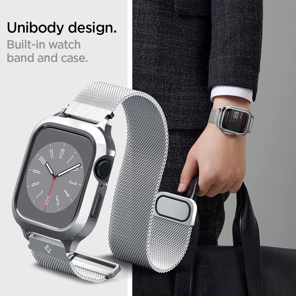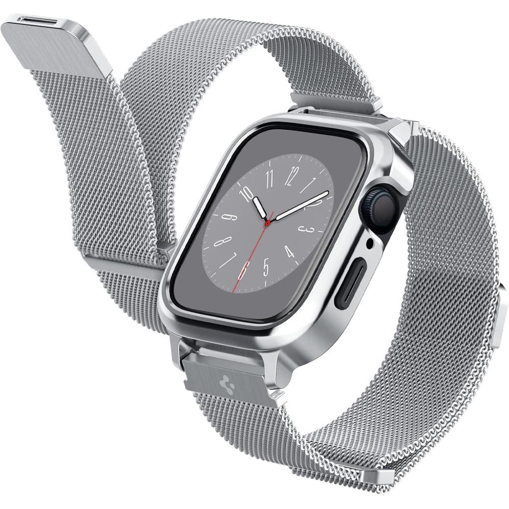 Spigen Metal Fit Pro Designed for Apple Watch Case with Band Series 9/8/7 45mm – Silver(Silver)