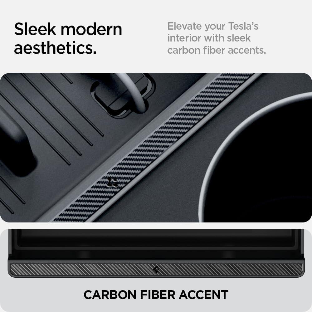 Spigen Non-Slide Center Console Organizer (Expanded Capacity) for Tesla Model Y Juniper (Only Premium & Performance 2025/26) and Model 3 Highland (Standard, Premium & Performance 2024/25/26)(Center Console Organizer (Expanded))