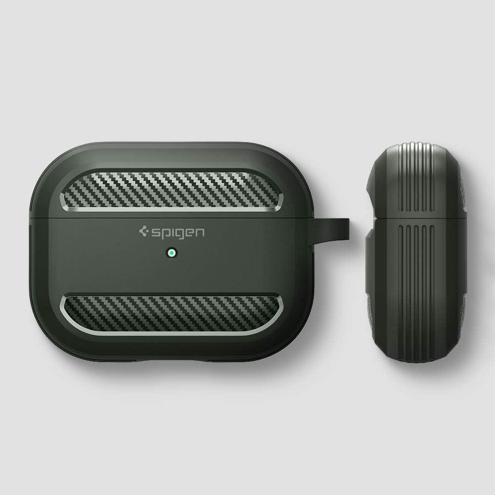 Spigen Rugged Armor Designed for AirPods Pro Case (2019) Drop Protection Cover with Carabiner – Matte Black(Military Green)