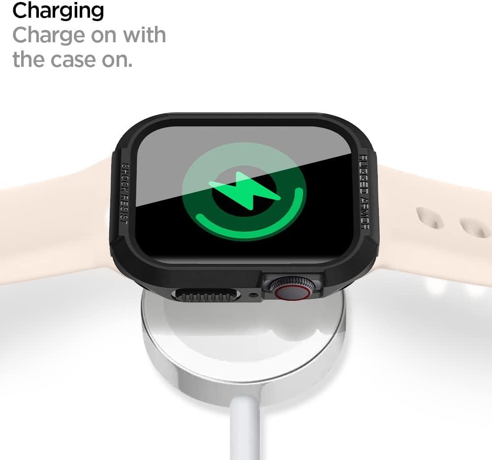 Spigen Rugged Armor Designed for Apple Watch Case Series SE3/9/8/SE2/7/6/SE/5/4 41mm/40mm Durable TPU Cover – Black(Black)