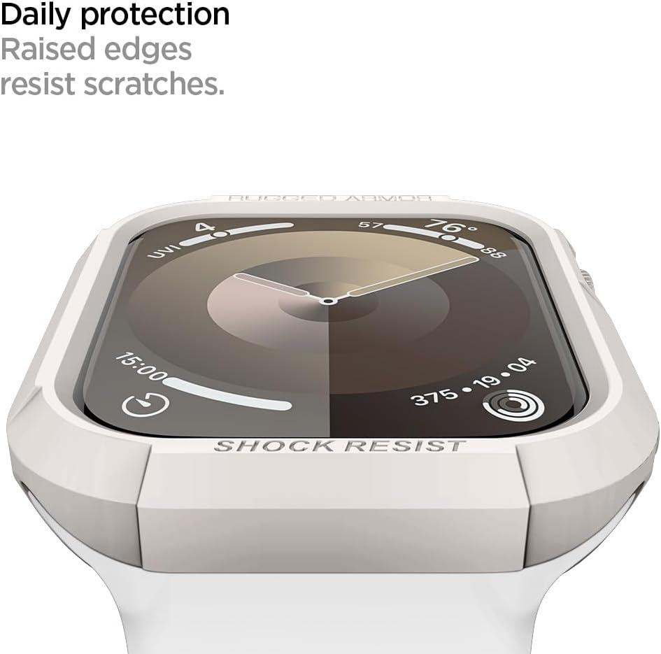Spigen Rugged Armor Designed for Apple Watch Case Series SE3/9/8/SE2/7/6/SE/5/4 45mm/44mm Durable TPU Cover – Black(Dune Beige)