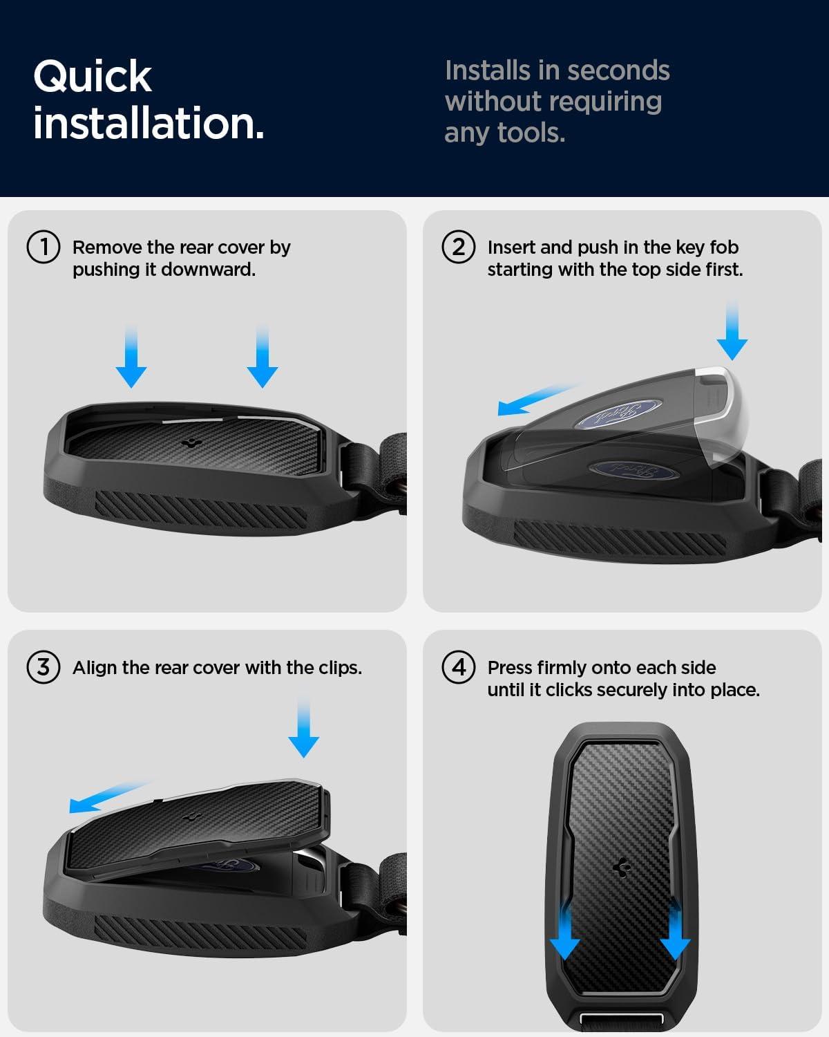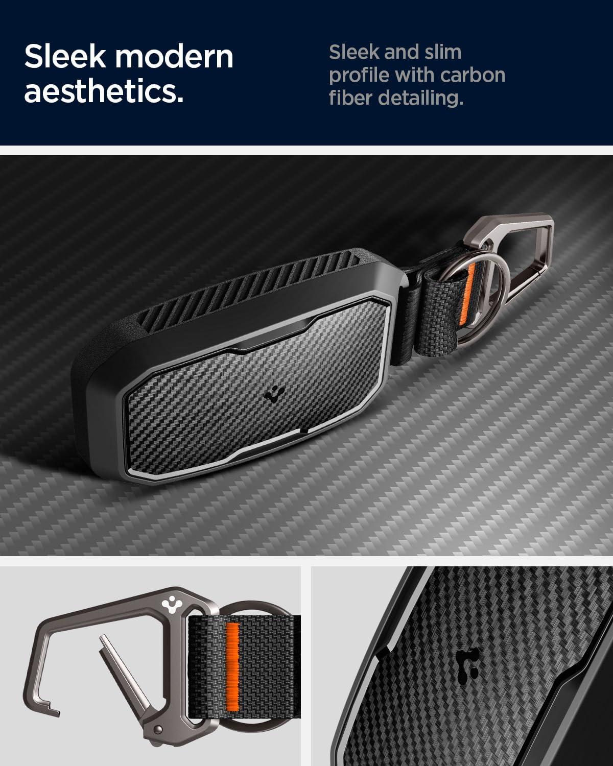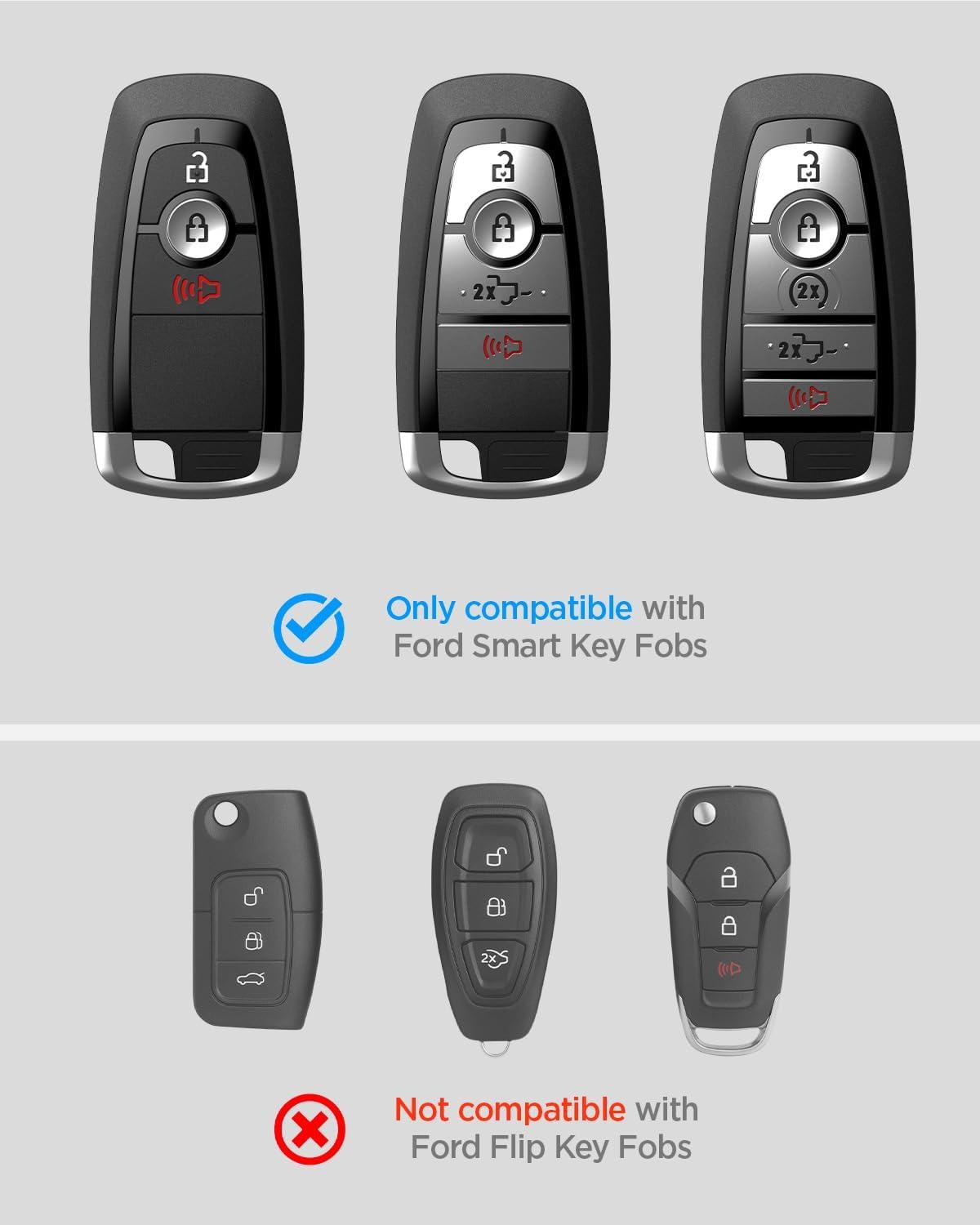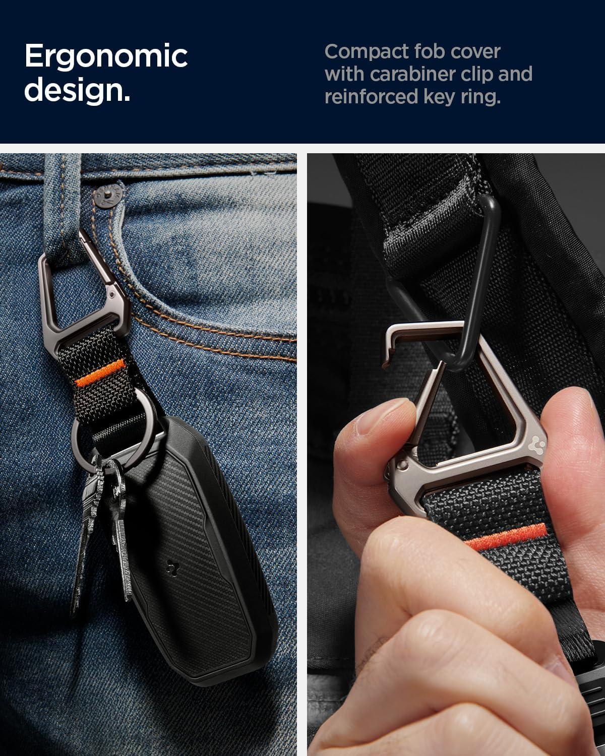 Spigen Rugged Armor Key Fob Cover with Carabiner & Keychain Designed for Ford F150, Explorer, Expedition, Maverick, Escape, Bronco, Mustang, Fusion, Lincoln 3/4/5 Button Smart Key Fobs(Ford)