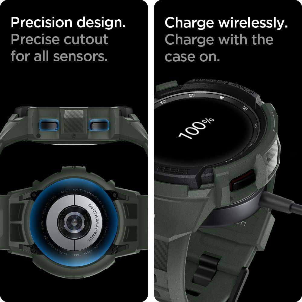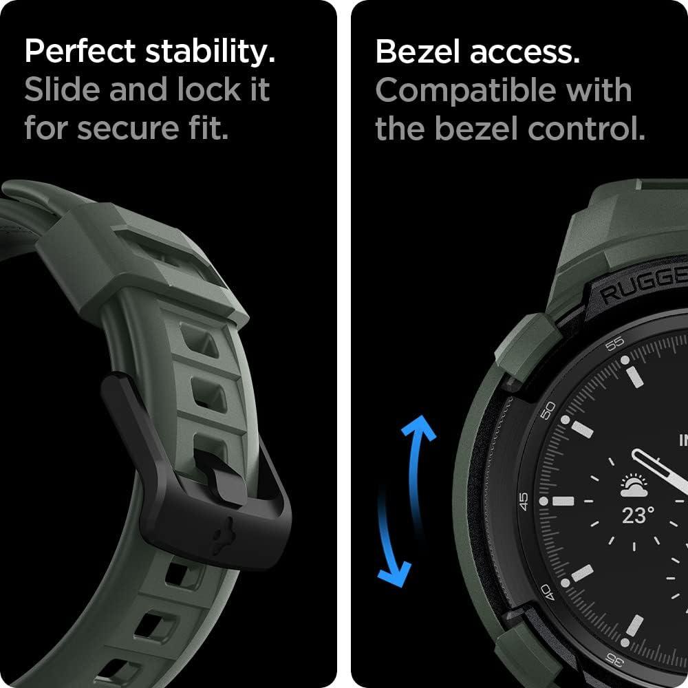 Spigen Rugged Armor Pro Designed for Galaxy Watch 4 Classic Case with Band 46mm (2021) – Black(Military Green)