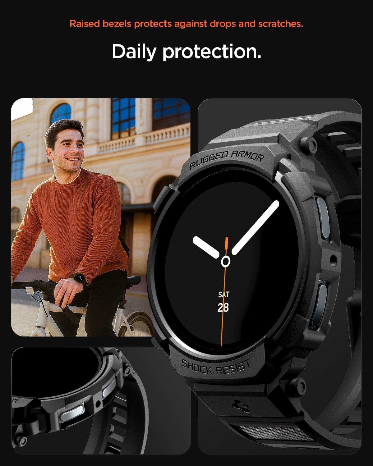 Spigen Rugged Armor Pro Designed for Samsung Galaxy Watch 8 44mm Case with Band Protective TPU Cover with Strap (2025) – Matte Black