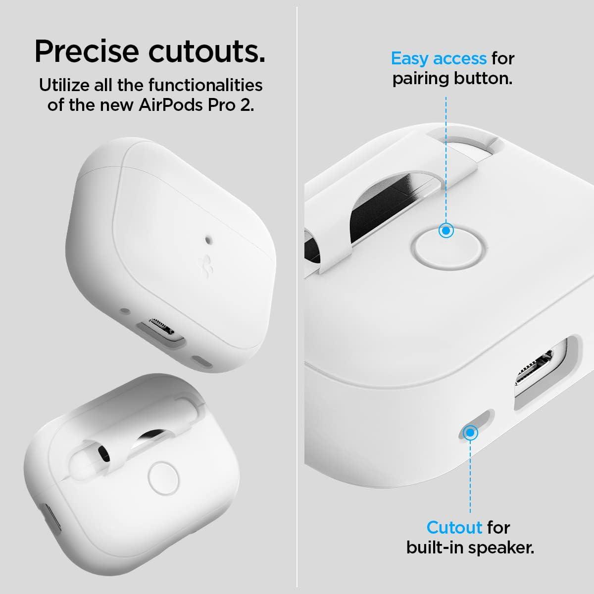 Spigen Silicone Fit Designed for AirPods Pro 2nd Generation Case 2022/2023 (USB-C/Lightening Cable) Lanyard Included – Black/Phantom Green(White Case & Gray Strap)