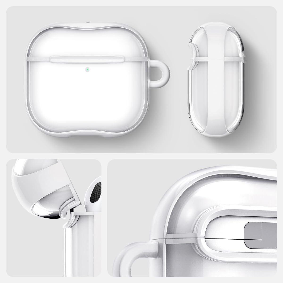 Spigen Ultra Hybrid Designed AirPods 4 Case (2024) Anti-Yellowing Clear Cover with Carabiner Key Chain – Jet White(Jet White)