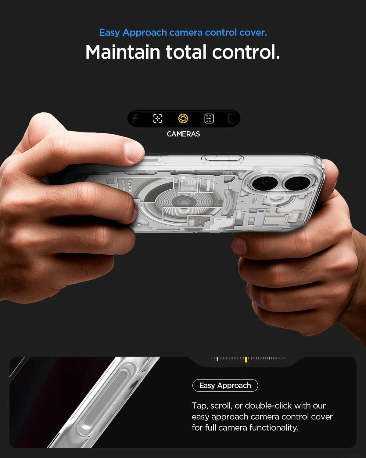 The camera control button is covered by a thin TPU layer, providing protection while maintaining functionality.
