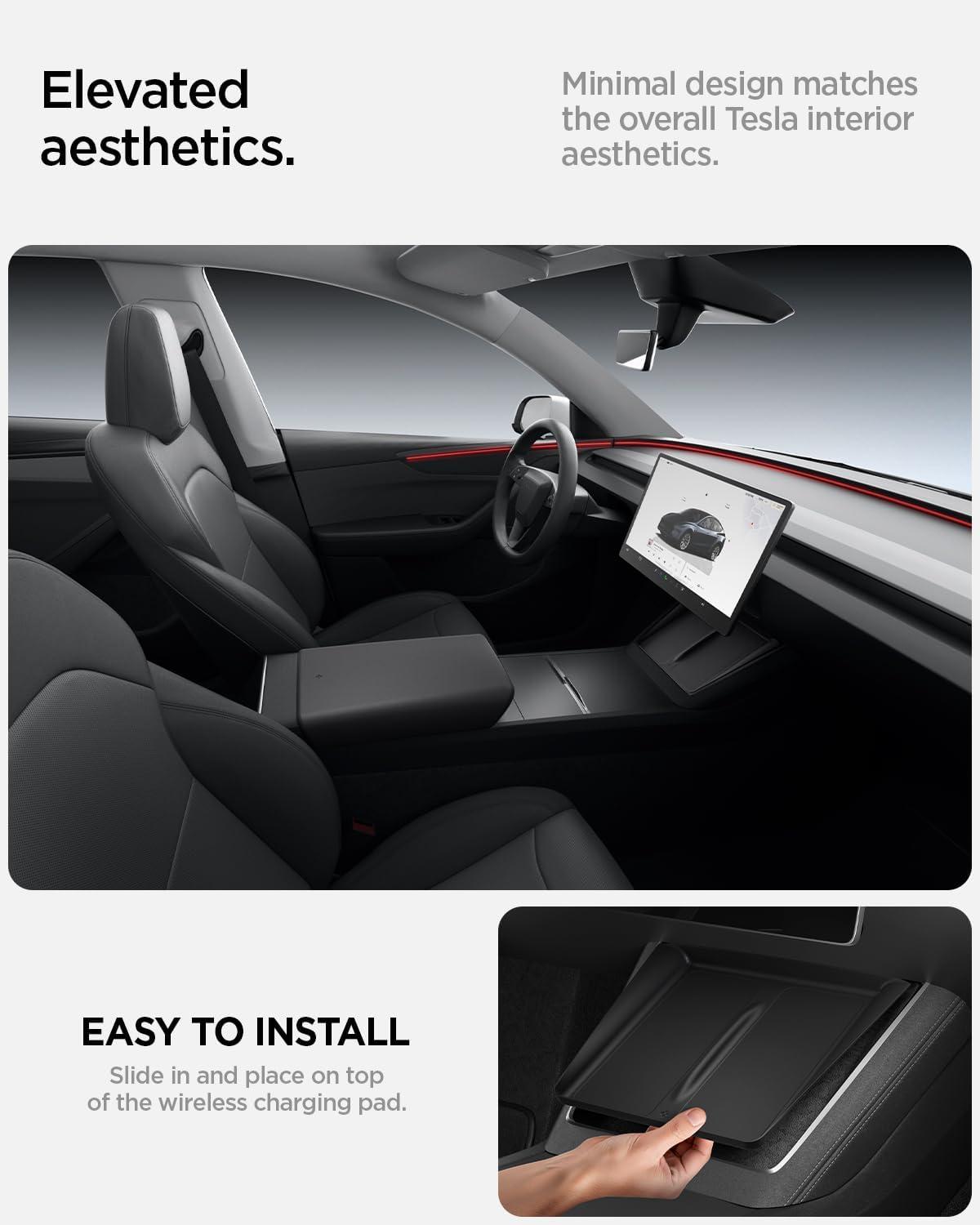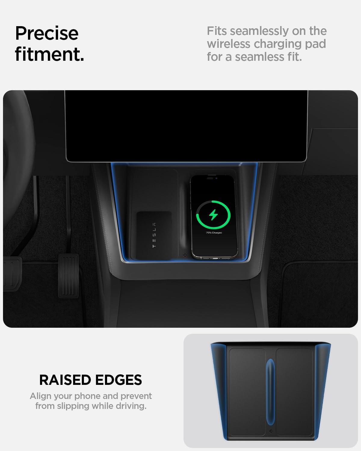 Spigen Ultra-Thin Wireless Charging Pad [Unobstructed Charging] Protective Silicone Mat Cover Accessories for 2025-2026 Tesla Model Y Juniper Premium/Performance – White(Black)