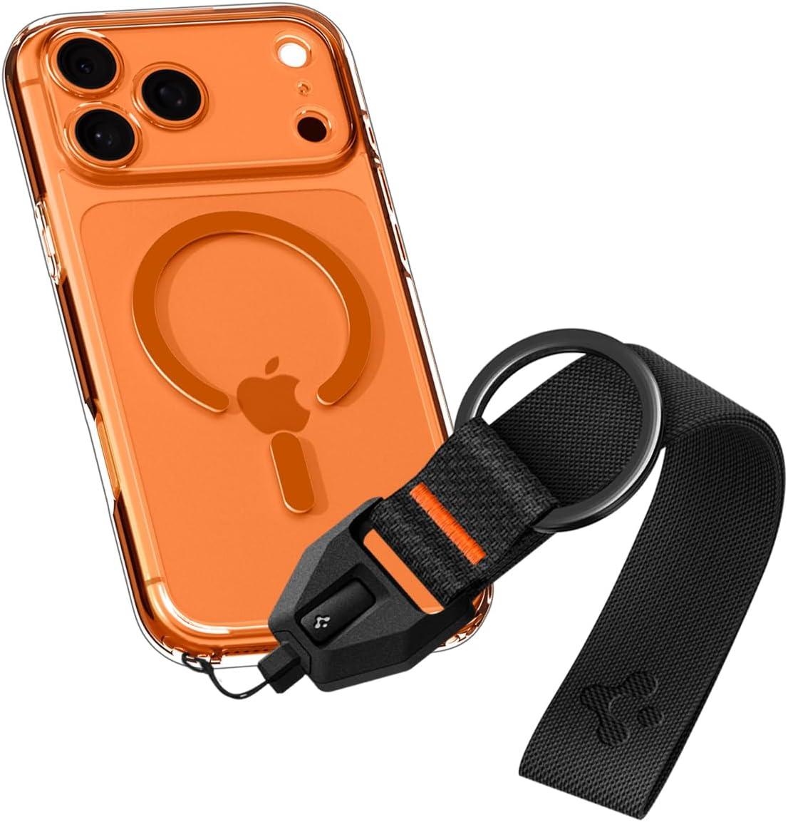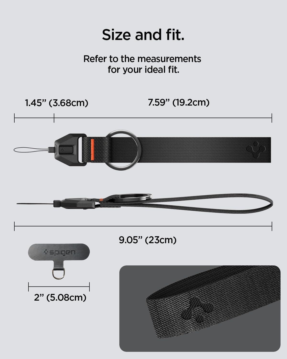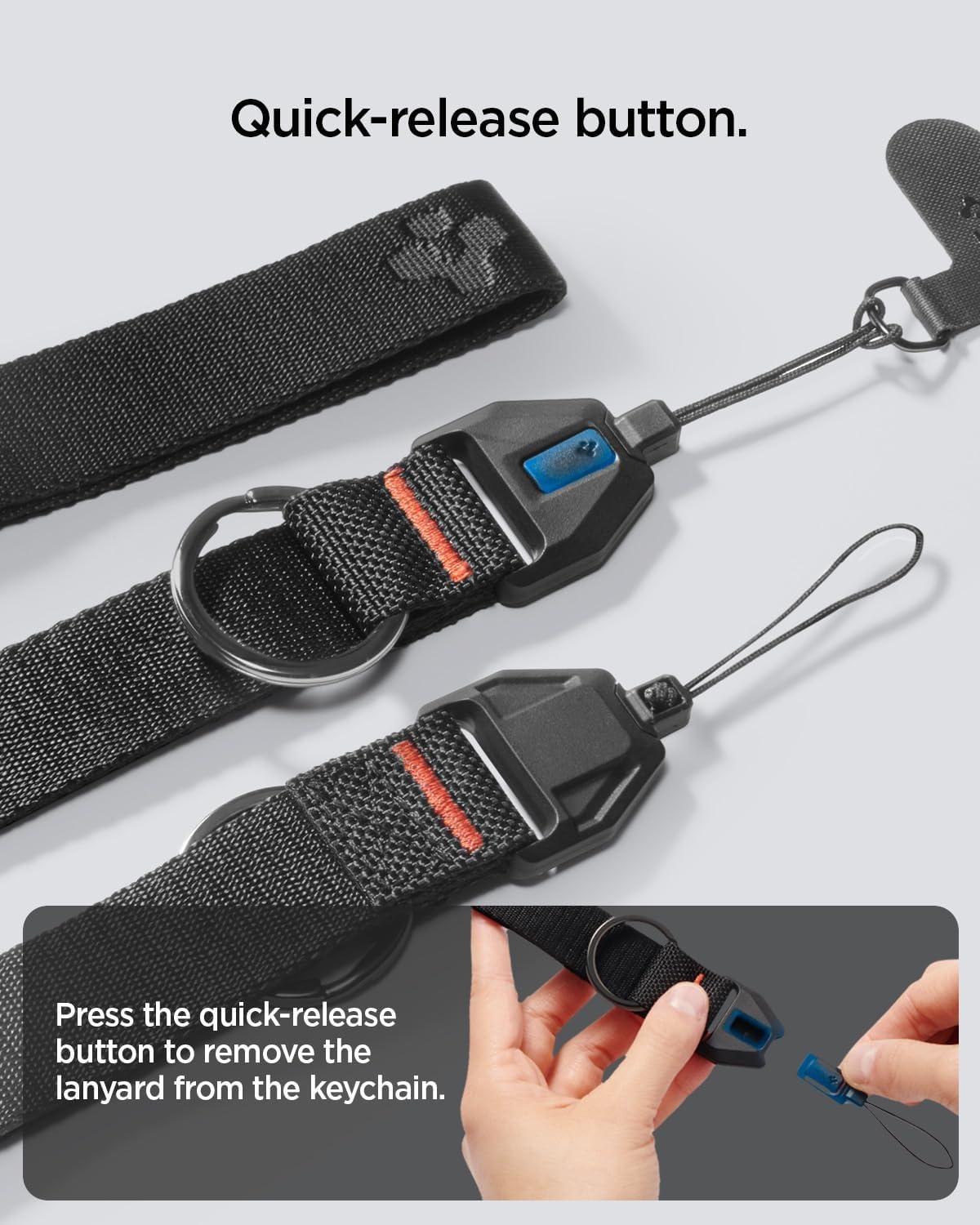 Spigen Universal Lanyard Wrist Strap with Keychain for iPhone, ID Badge Wallet Holder, AirPods, Cameras, Keychain & Everyday Carry, Durable Carabiner with Wrist Strap – Black(Black)