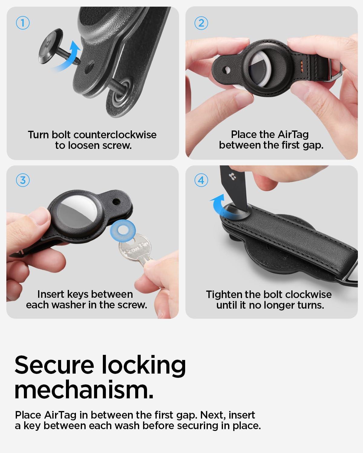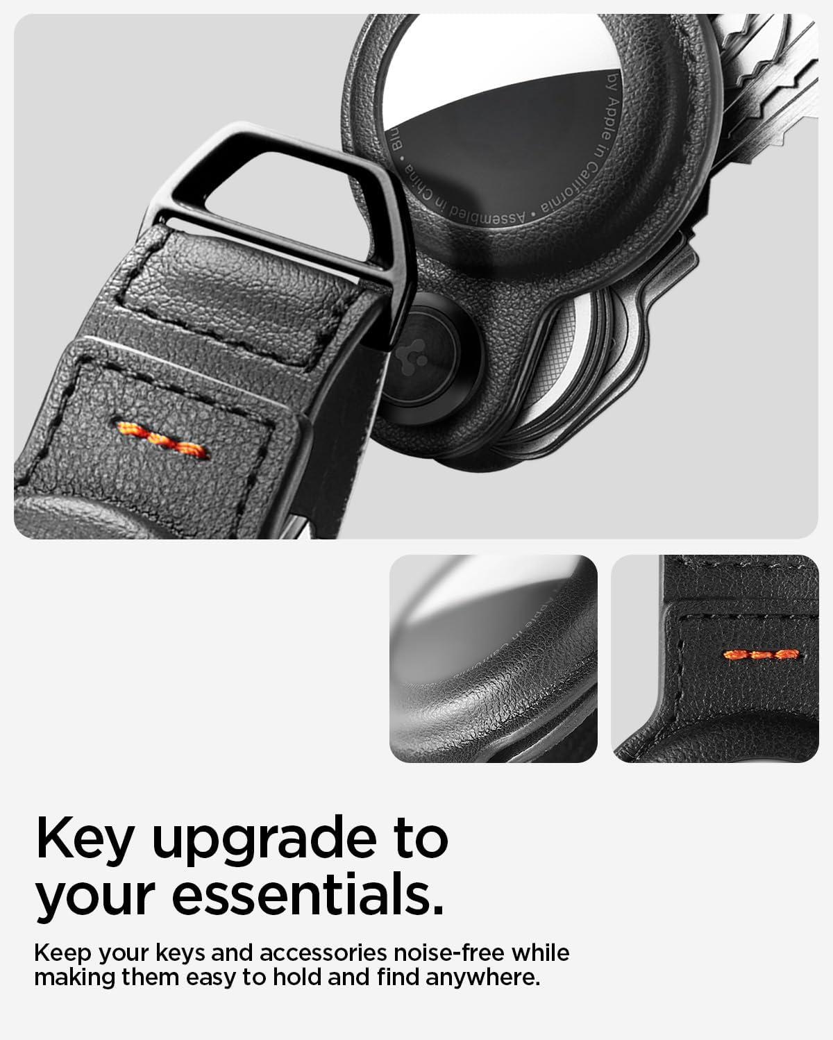 Spigen Valentinus Designed for AirTag 2nd Gen (2026) & 1st Gen Case Cover Holder Keychain Ring Carabiner for Keys, Bags, Wallets, Pet Collar – Black(Black)
